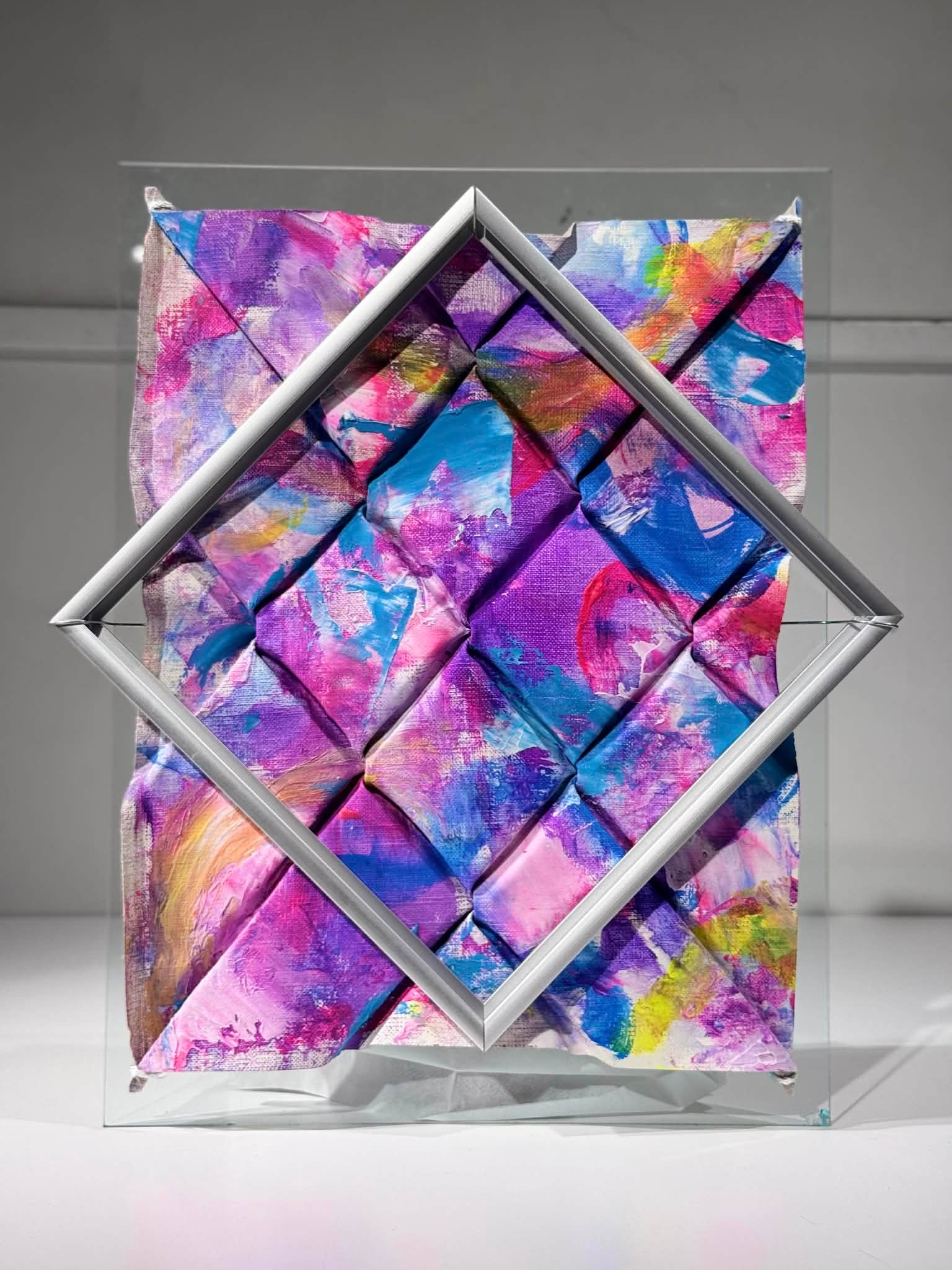 現代アーティストSHEERの抽象画を、折り紙アーティストのHiro Kanoが「折る」ことで完成させるアートユニット。0と1のデジタル世界にはない、肉体的な「手触り」や計算不可能な「偶発性」を追求。時の流れの中で重なり合う人間の複雑な想いを、色彩と折り目の層に閉じ込める。