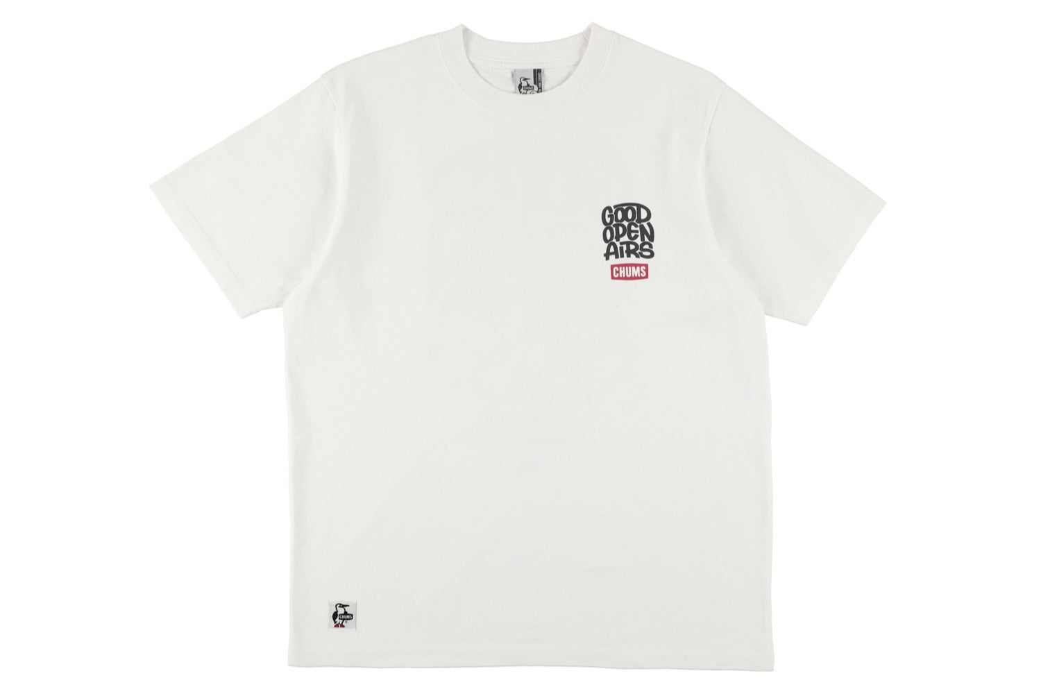 背面にイラストを大きく配し、前面にはGOOD OPEN AIRSとCHUMSのロゴをあしらっています。