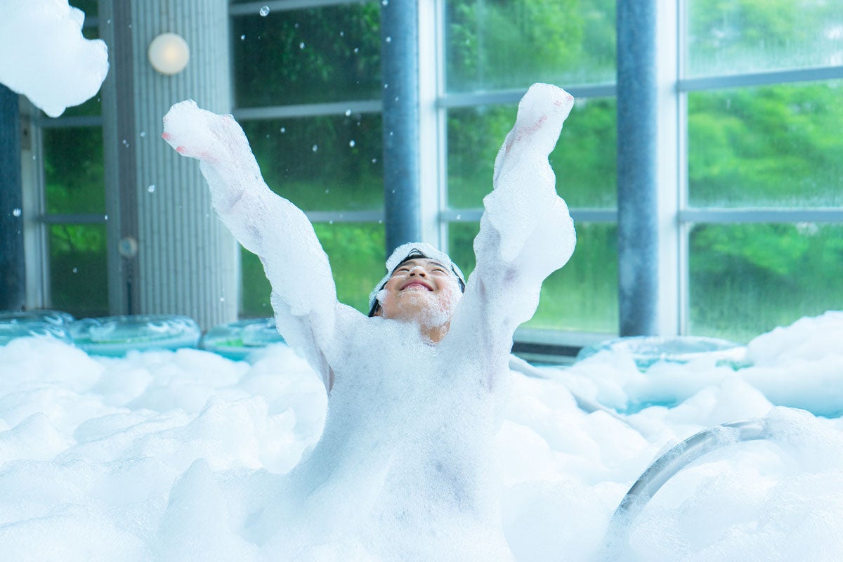 期間中は、水着で楽しめるお風呂エリアで大量の泡が噴き出す人気イベント「泡バズーカー」をはじめ、お子さま向けの「キッズお菓子BAR」、家族で参加できる「ファミリービンゴ大会」など、子どもから大人まで楽しめるコンテンツを実施。自然に囲まれた空間の中で、「遊び」と「体験」をテーマに、家族の思い出づくりができるゴールデンウィークイベントを展開します。