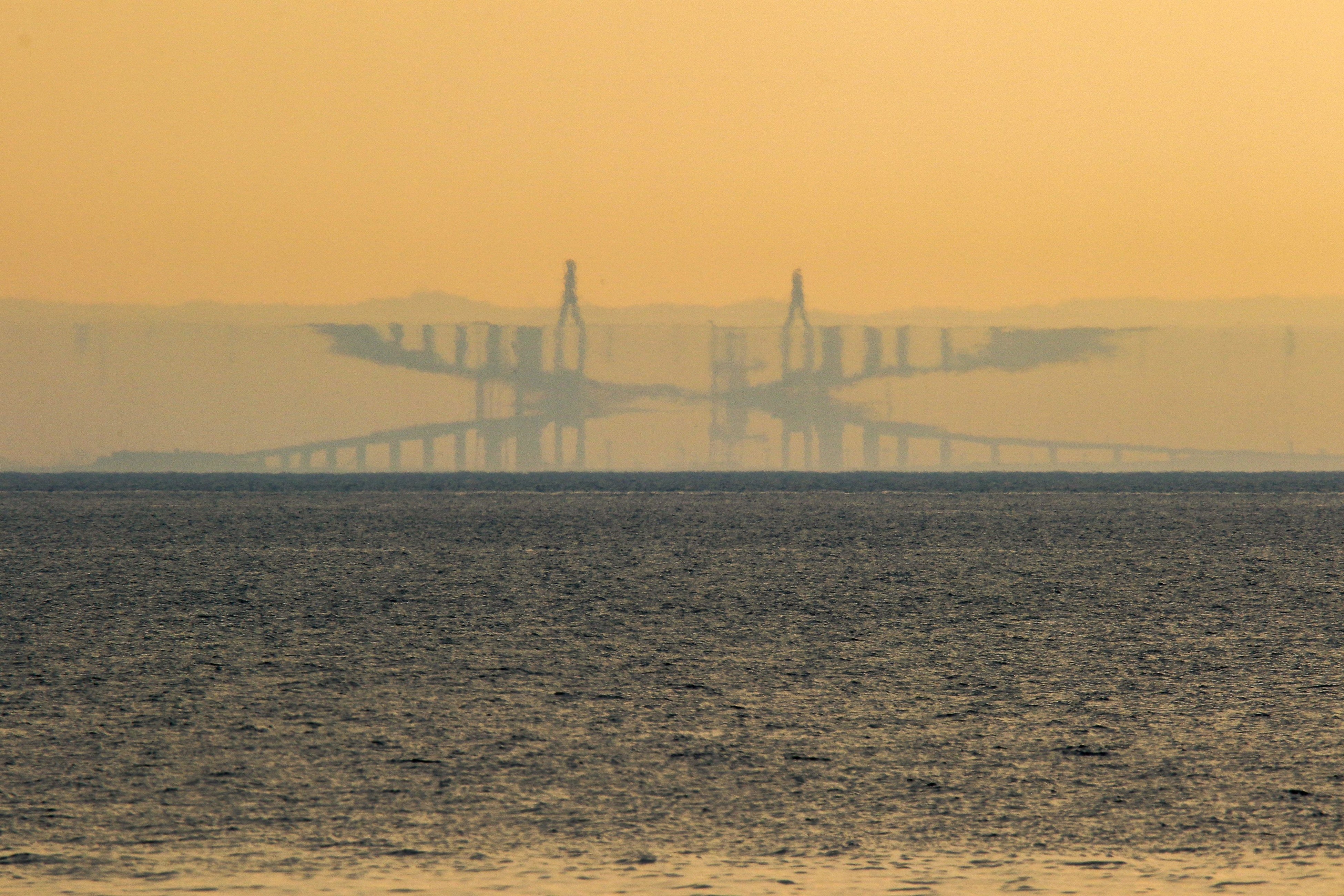(※2)蜃気楼は、空気中で光が屈折して5~20km離れた景色が実際とは違う形に見える現象です。春は上位蜃気楼と言われ、実際の風景の上側に、伸びたり反転した虚像が出現します。