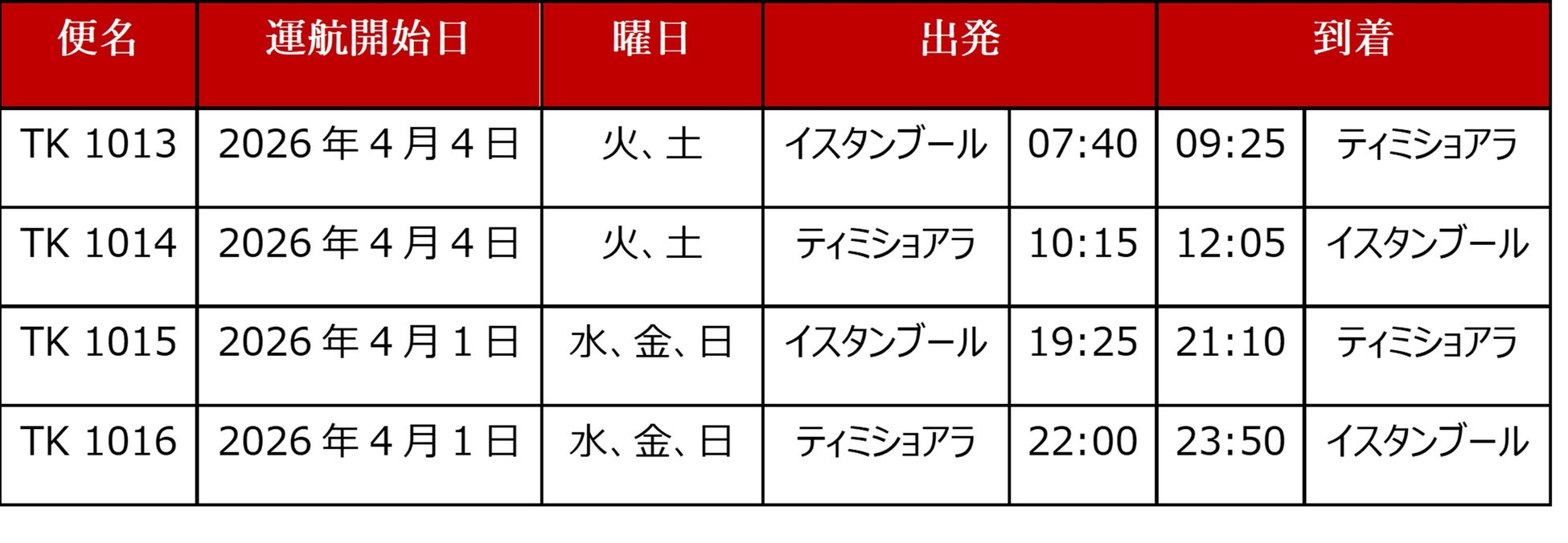 「ルーマニアは、東欧での当社の戦略において重要な市場の一つです。ティミショアラ線の新規就航により、ルーマニアでのネットワークは4都市へと拡大し、お客様により多様な選択肢を提供するとともに、イスタンブールをハブとする比類なきグローバルネットワークへのアクセスをさらに強化します。本路線は、同地域におけるビジネスおよび観光の両面での発展に寄与するものと確信しております。」