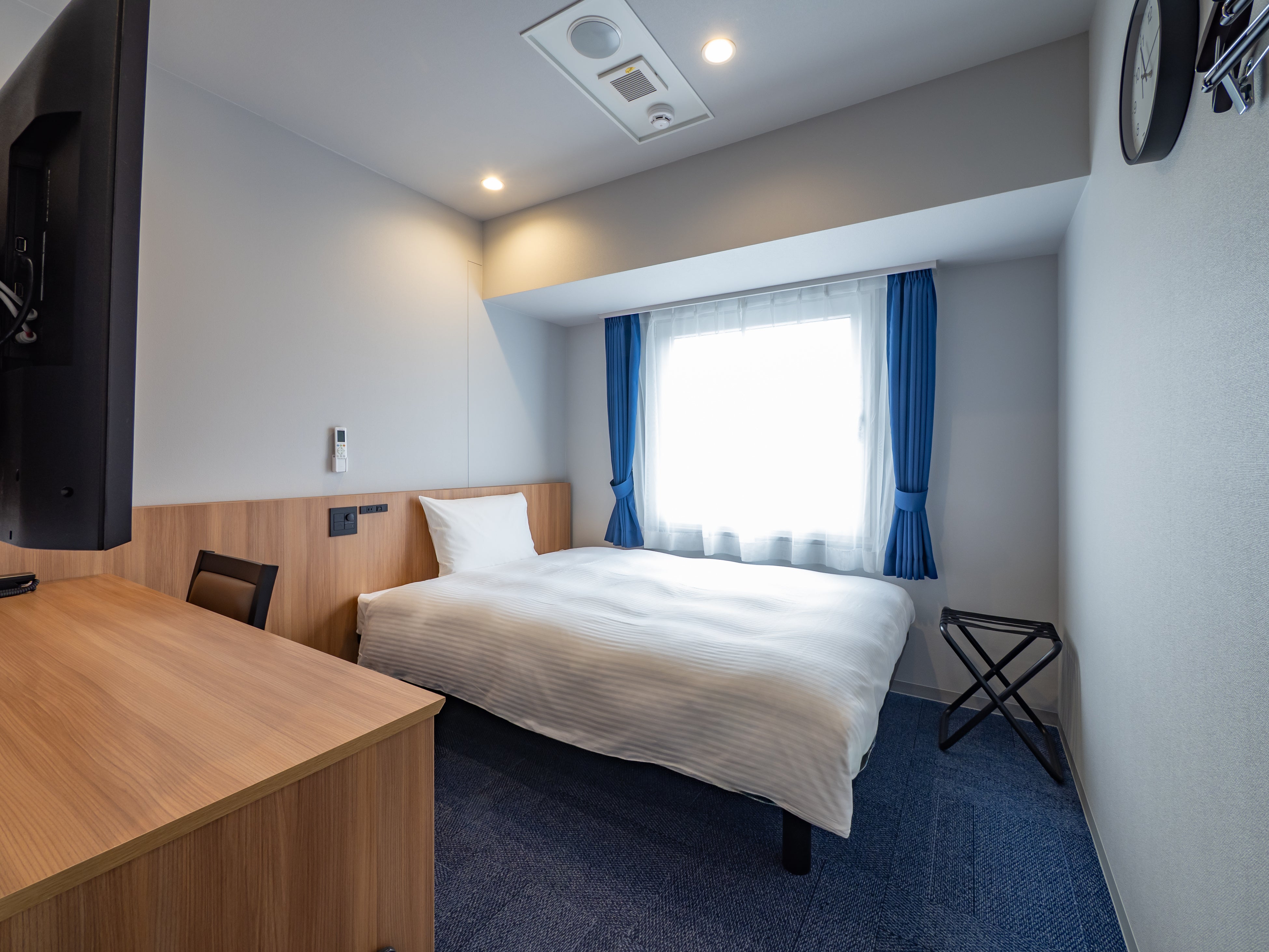 「東横INN呉駅」の客室にはダウンライトを採用し、さらにヘッドボードや吊戸棚を設置するなど最新の仕様になっています。よりスタイリッシュに進化した東横INNをお楽しみください。