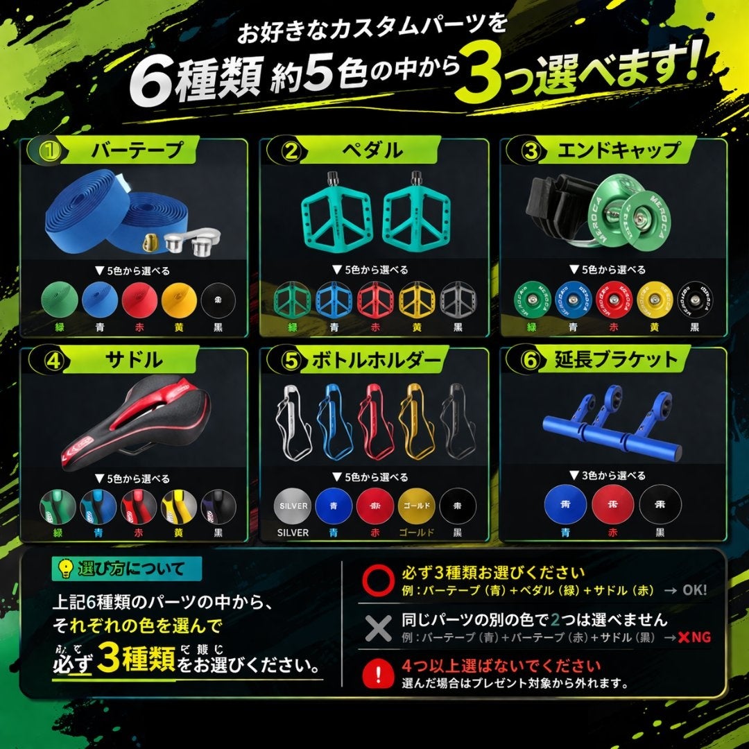 プレゼント内容:お好きなカスタムパーツ3点(5,000円相当)をプレゼント