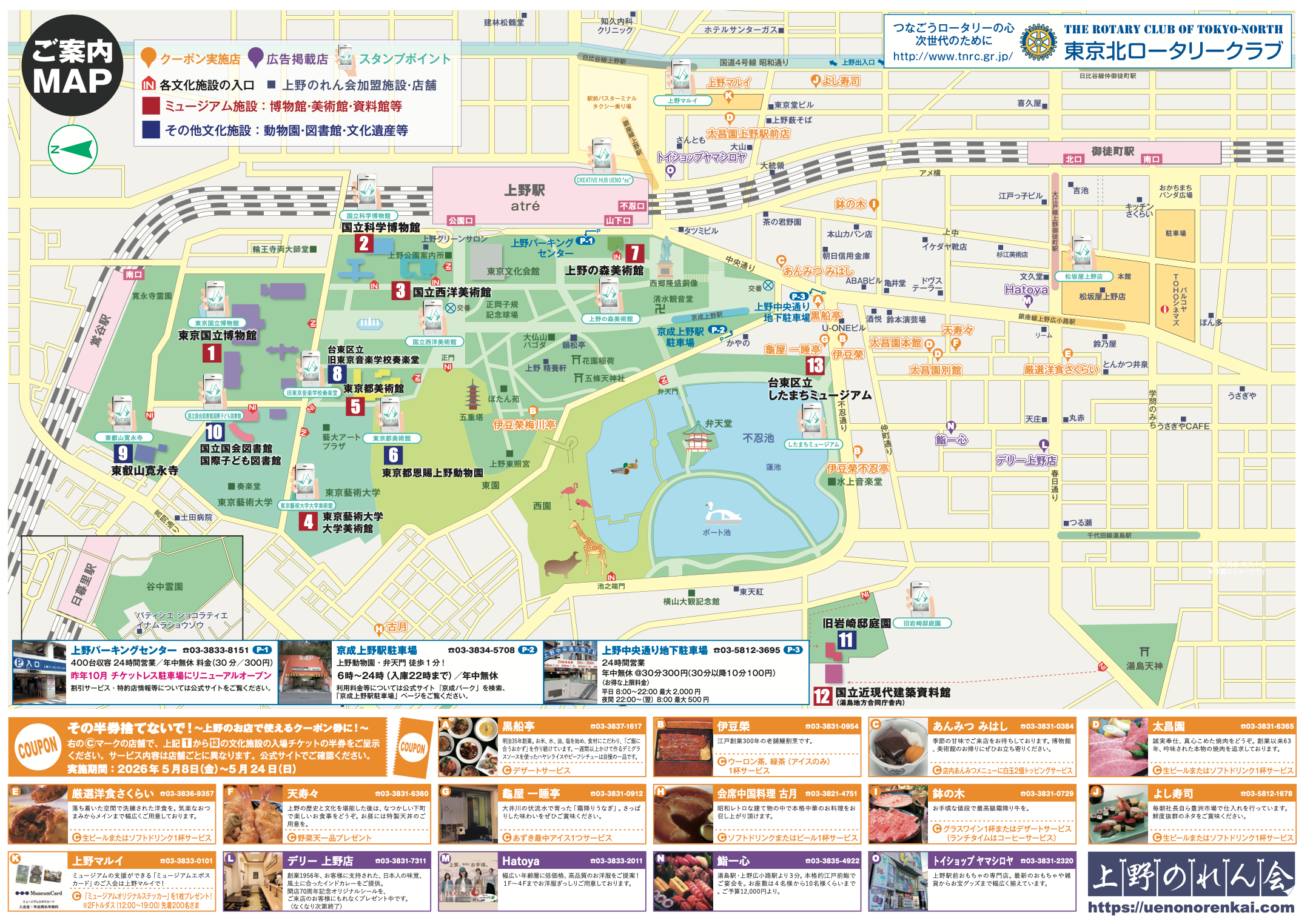 上野エリアのグルメ、ショッピングのお店で使える杜まちクーポン