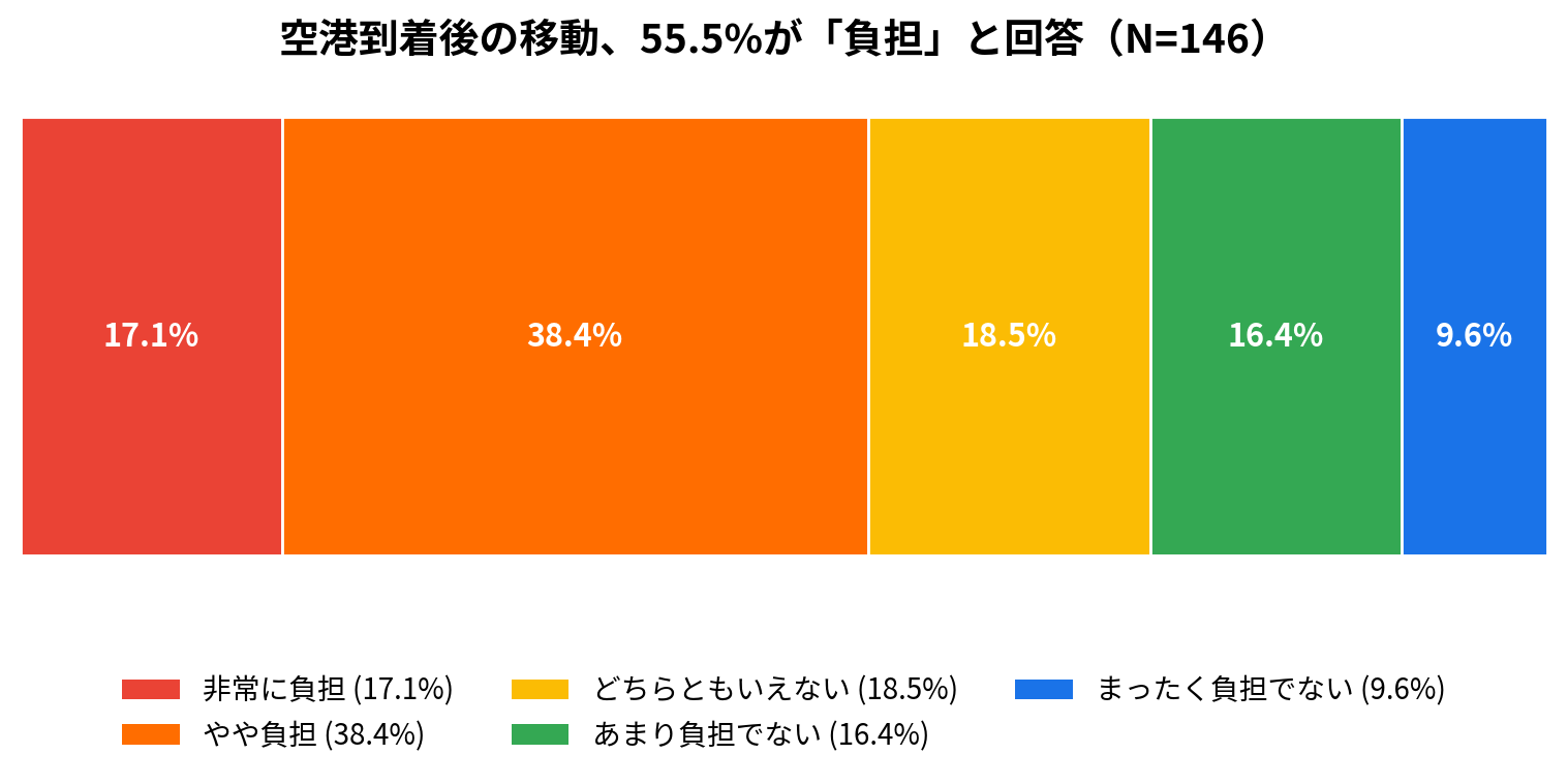■ 調査結果①:空港到着後の移動、55.5%が「負担」