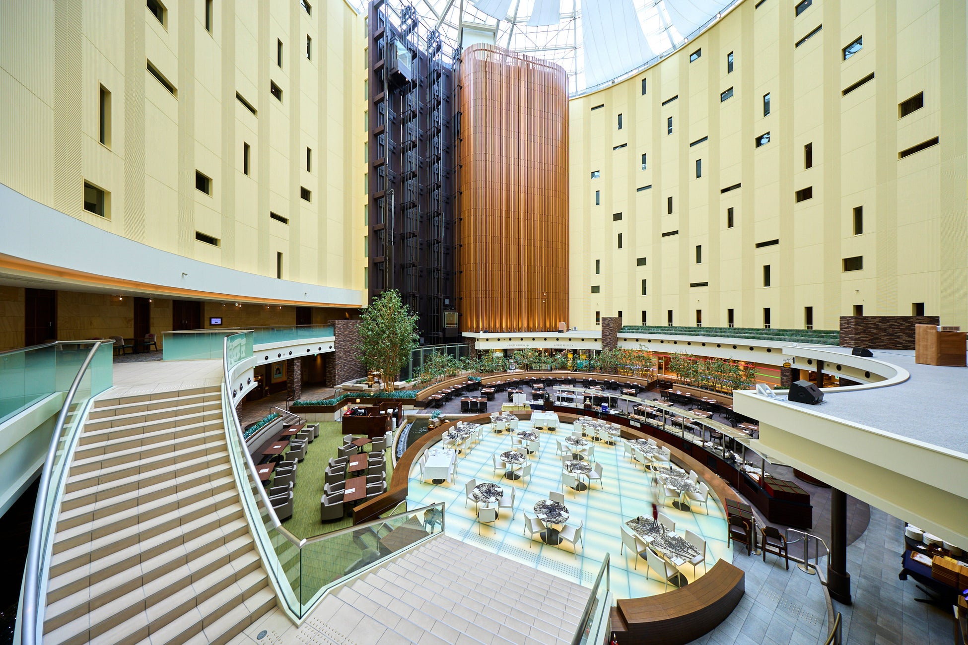 会場は、11層吹き抜けのアトリウムに位置するレストラン ファインテラス。