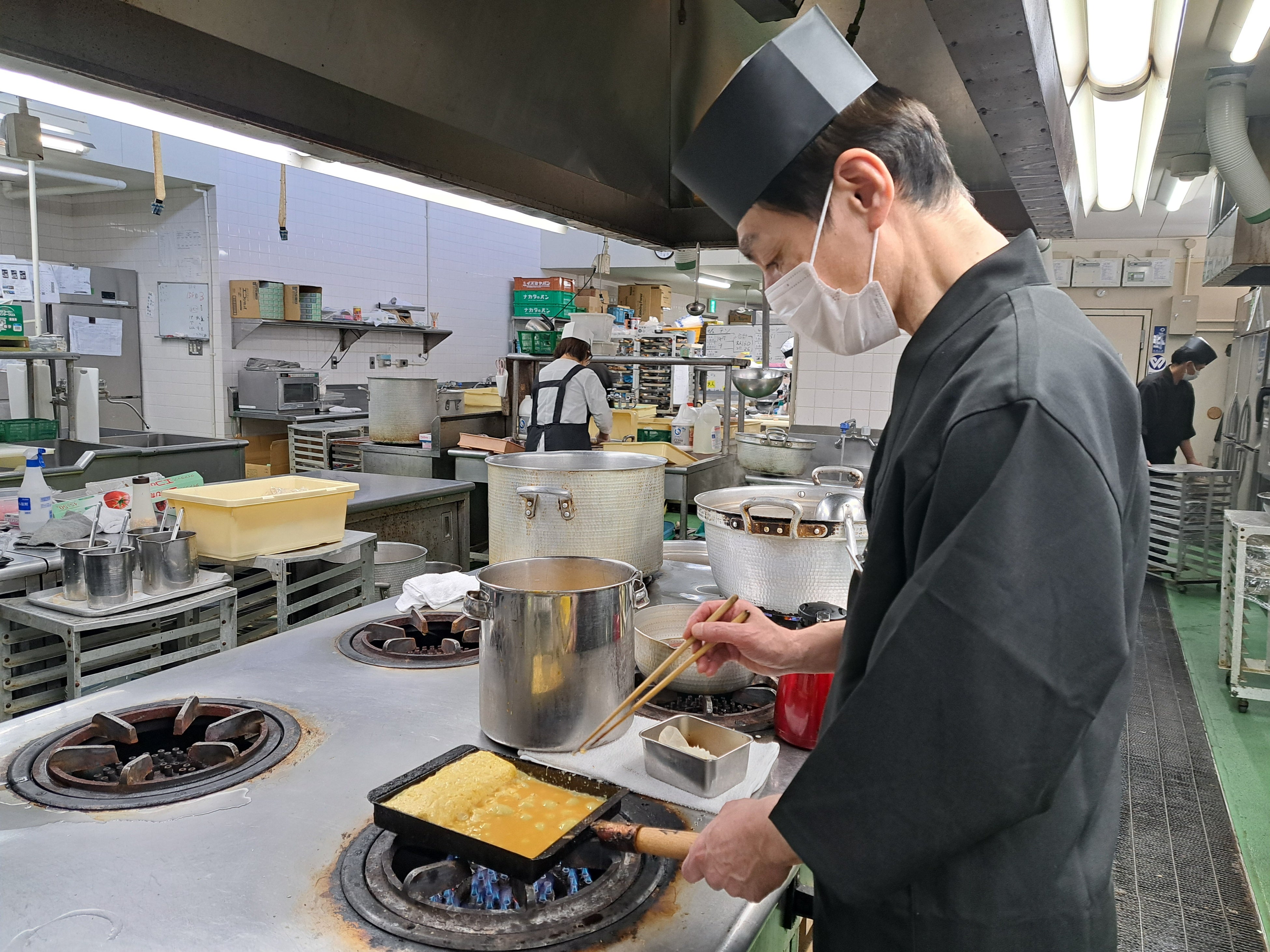 休暇村紀州加太の料理長が絶妙な出汁の割合で作る出汁巻きは朝食でも人気の一品です。ランチでは注文を受けてから作るため、アツアツ・ふわっふわの出汁巻き玉子をお召し上がりいただけます。
