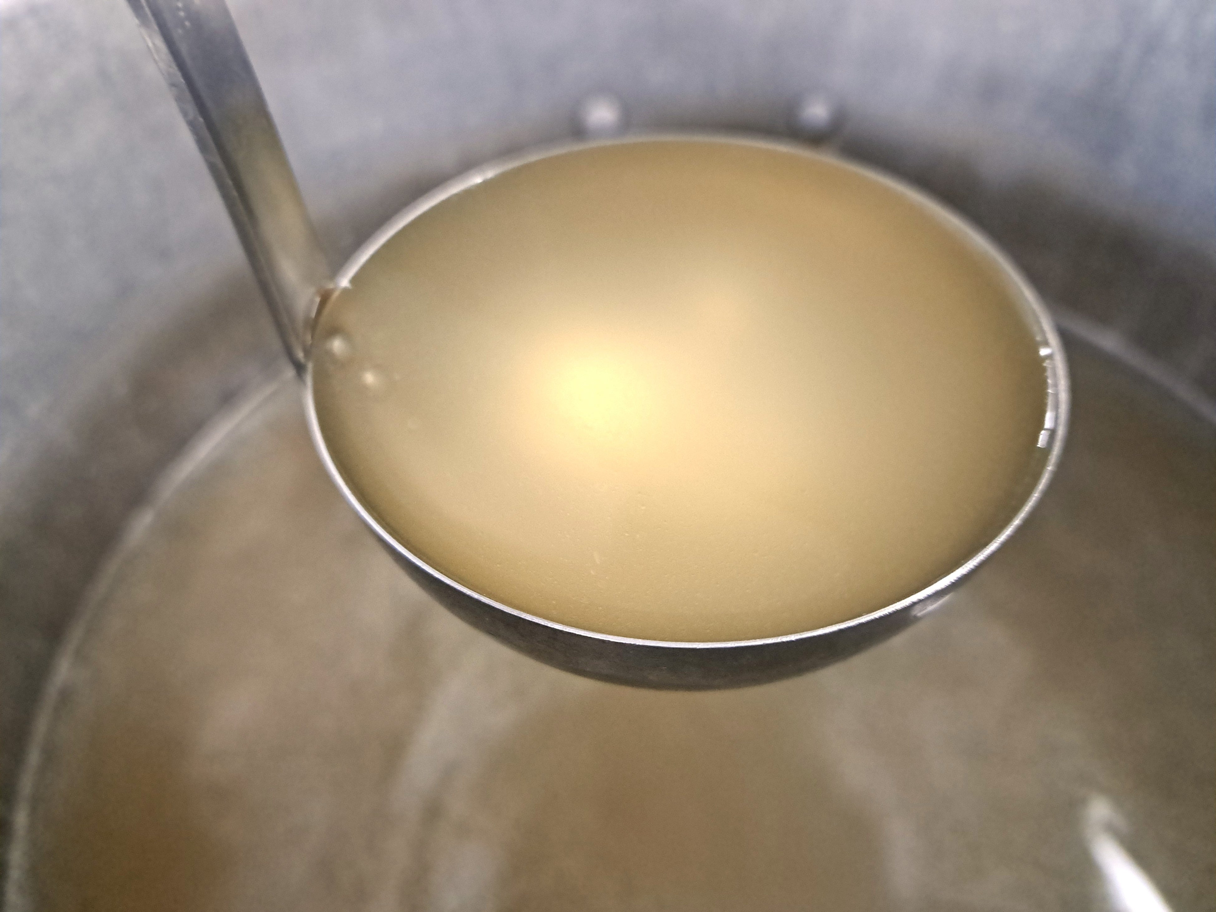 可食部の少ない中骨やアラはそのまま廃棄するのではなく、丁寧に調理したうえで有効活用としてオリジナル鯛ダシを開発しました。サッと焼くことで臭みを取り除き一晩漬け置き。翌日約2時間じっくり煮込むことで、鯛本来の旨みを凝縮し柔しい味わいとなります。