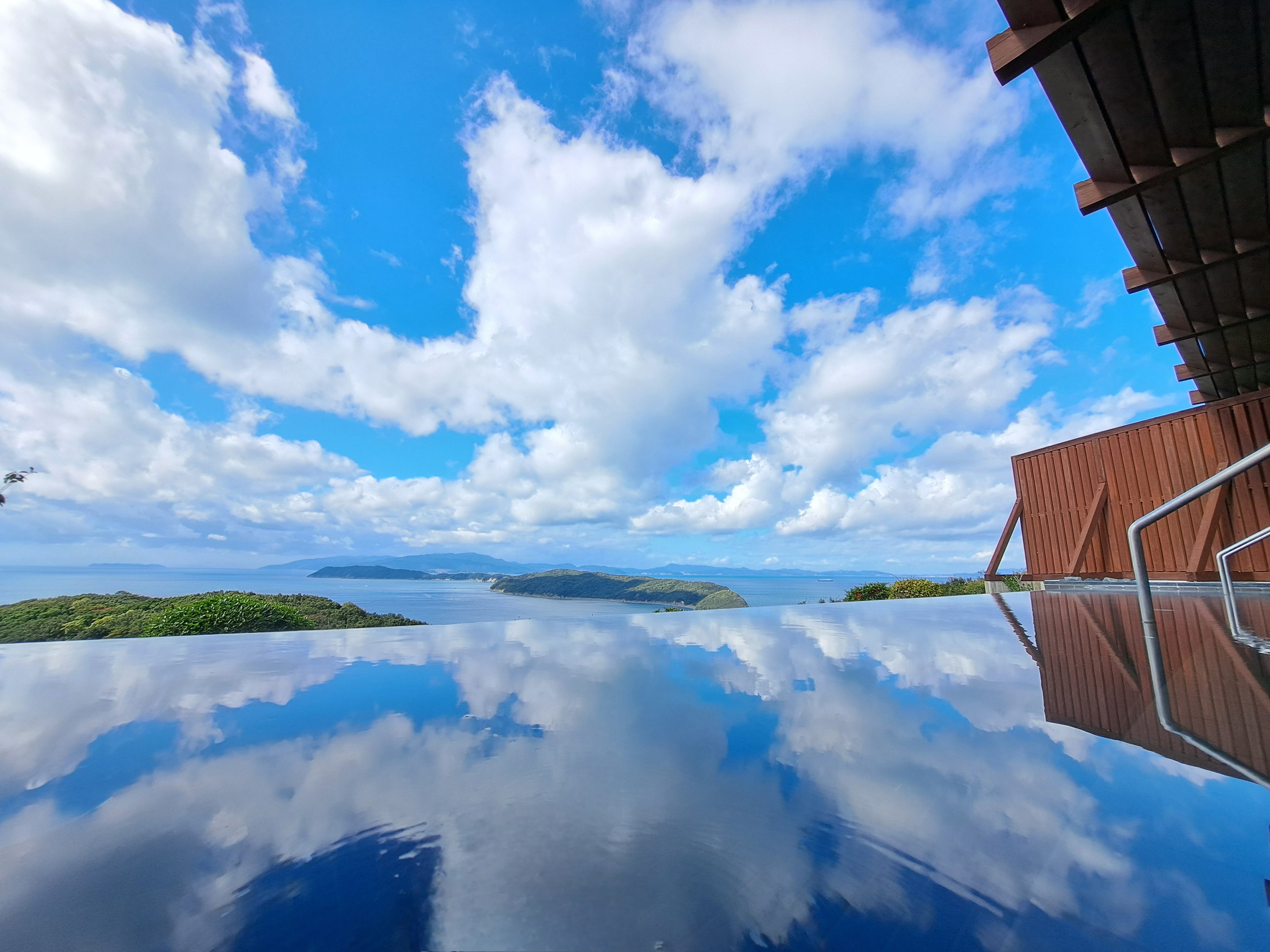 紀淡海峡一望の絶景露天風呂で湯ったりリラックス。海面と湯面が一体化となるインフィニティ風呂からは友ヶ島や淡路島はもちろん遠くは徳島まで見渡せるほど。