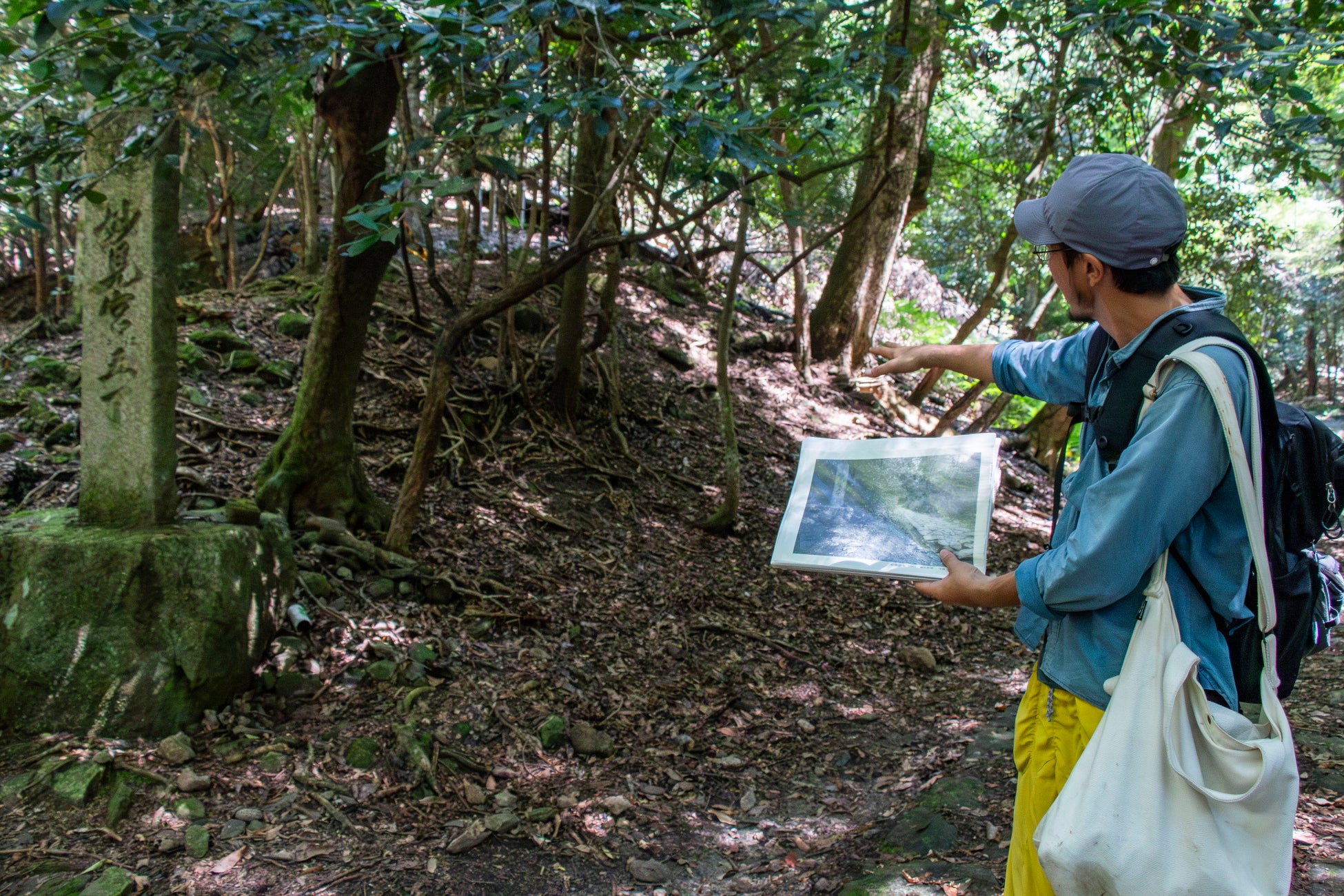 このガイドウォークで歩くのは、「滝坂の道(旧柳生街道)・南部遊歩道」と呼ばれるコース。ガイドとともに、江戸時代に奈良奉行のため敷かれた石畳の道や、山岳仏教の信仰対象とされていた石仏などの史跡を巡りつつ、春日山と高円山の谷あいを歩きます。