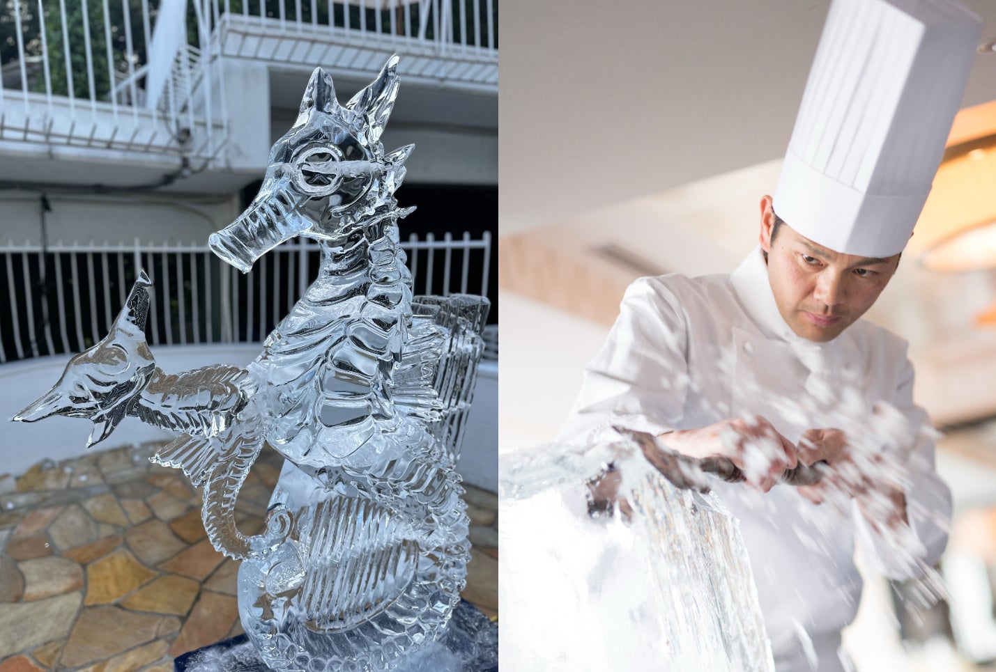 氷彫刻世界大会にて19度のグランプリに輝いたホテル専属の氷彫刻士、平田浩一による『氷彫刻教室』を開催いたします。氷の塊をグラスの形に削り出し、イベントの最後にはご自身で作ったグラスに実際にお飲み物を注ぎ、お召し上がりいただきます。日常生活では経験できない、氷を形作る体験はお子さまのみならず大人の方も夢中になってしまうこと間違いなし。イベント内では、平田による迫力ある氷彫刻の実演も間近でご覧いただけます。世界が認めた匠の技に触れる氷彫刻体験をお愉しみください。
