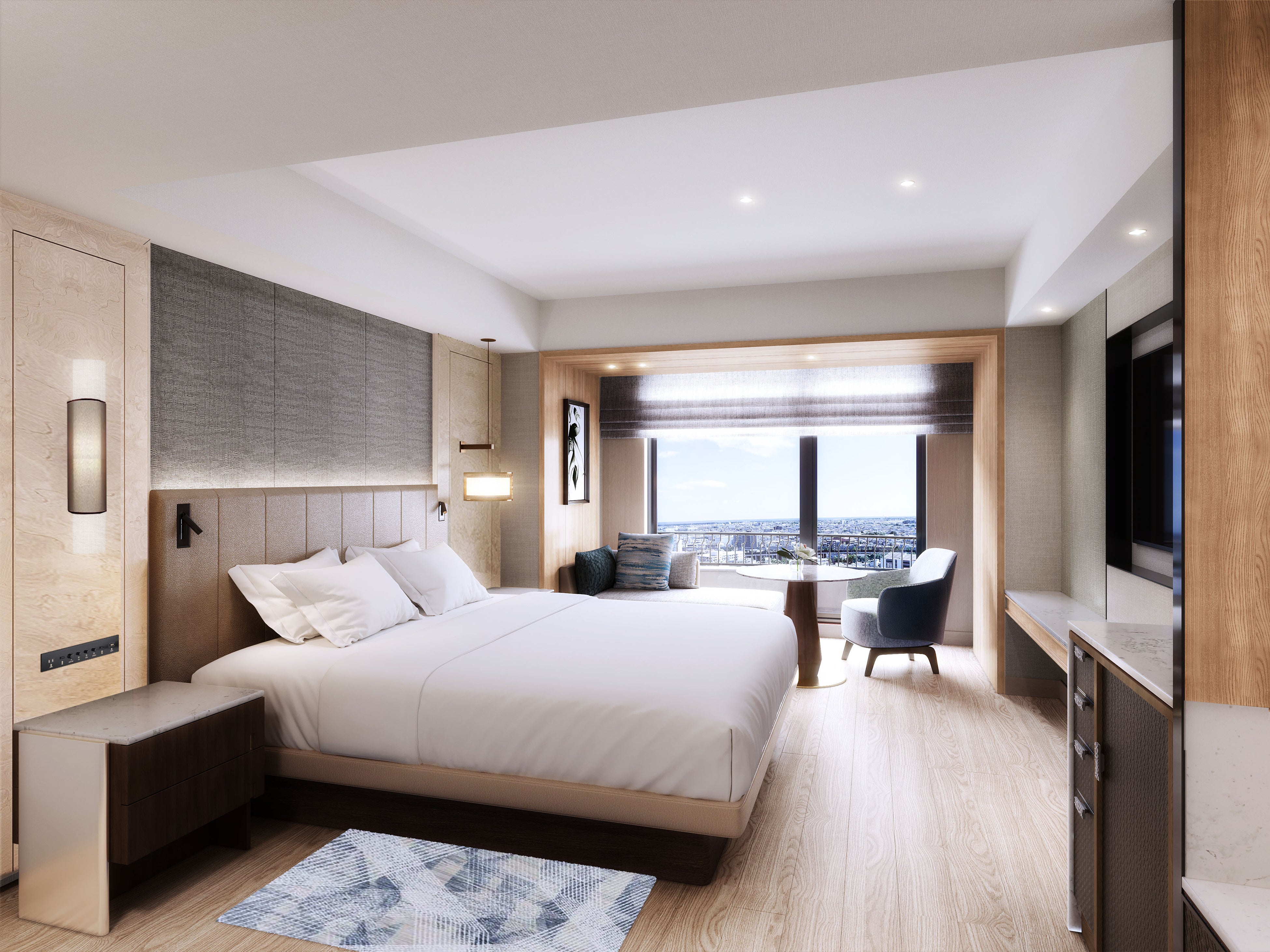 日本の産業と音楽の街・浜松市の中心部に位置し、国内外のビジネス拠点として理想的な滞在環境をご提供する浜松マリオットホテルは、浜松駅や主要企業へのアクセスに優れ、浜松での活動拠点として最適です。また、雄大な遠州の海岸線や浜名湖の豊かな自然を望むロケーションは、ビジネスと観光の双方にふさわしい魅力を備えています。館内には、浜松の豊かな織物文化からインスピレーションを得た、スイートルームを含む236室の客室をご用意。重なり合うテクスチャー、上質な素材、伝統的な織物を思わせるモチーフを取り入れたインテリアにより、落ち着きと洗練を兼ね備えた空間を演出し、きめ細やかなサービスとともに快適な滞在をご提供いたします。