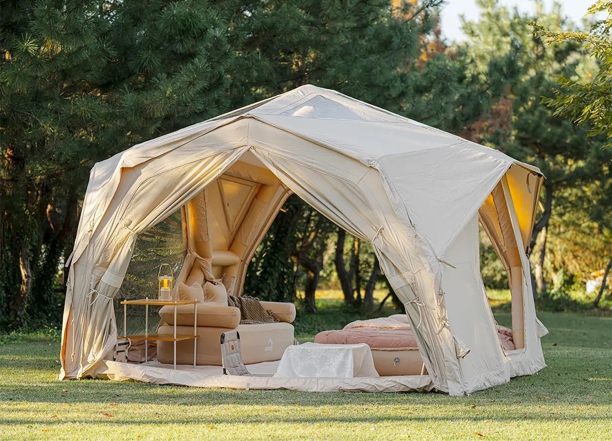 coodyのエアテントは、ポンプで空気を入れるだけの簡単設営。