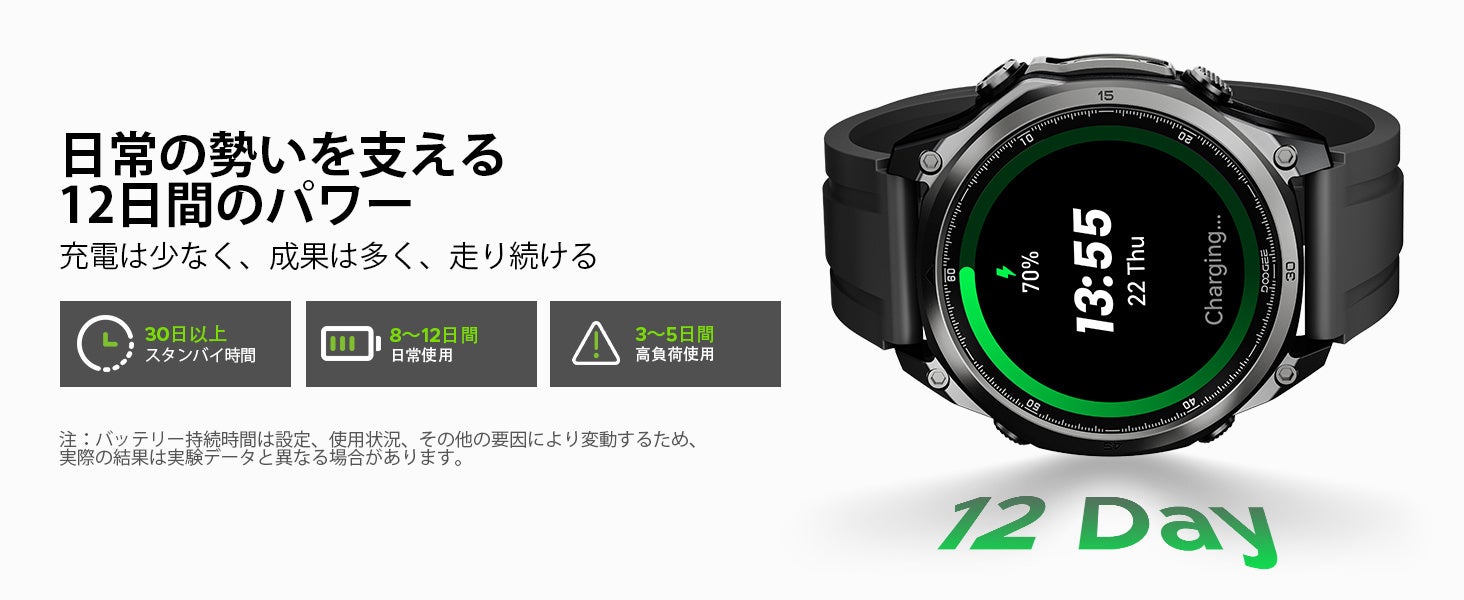 鮮やかな発色と高輝度表示により、屋外でも見やすく、スマートウォッチ初心者にもおすすめです。