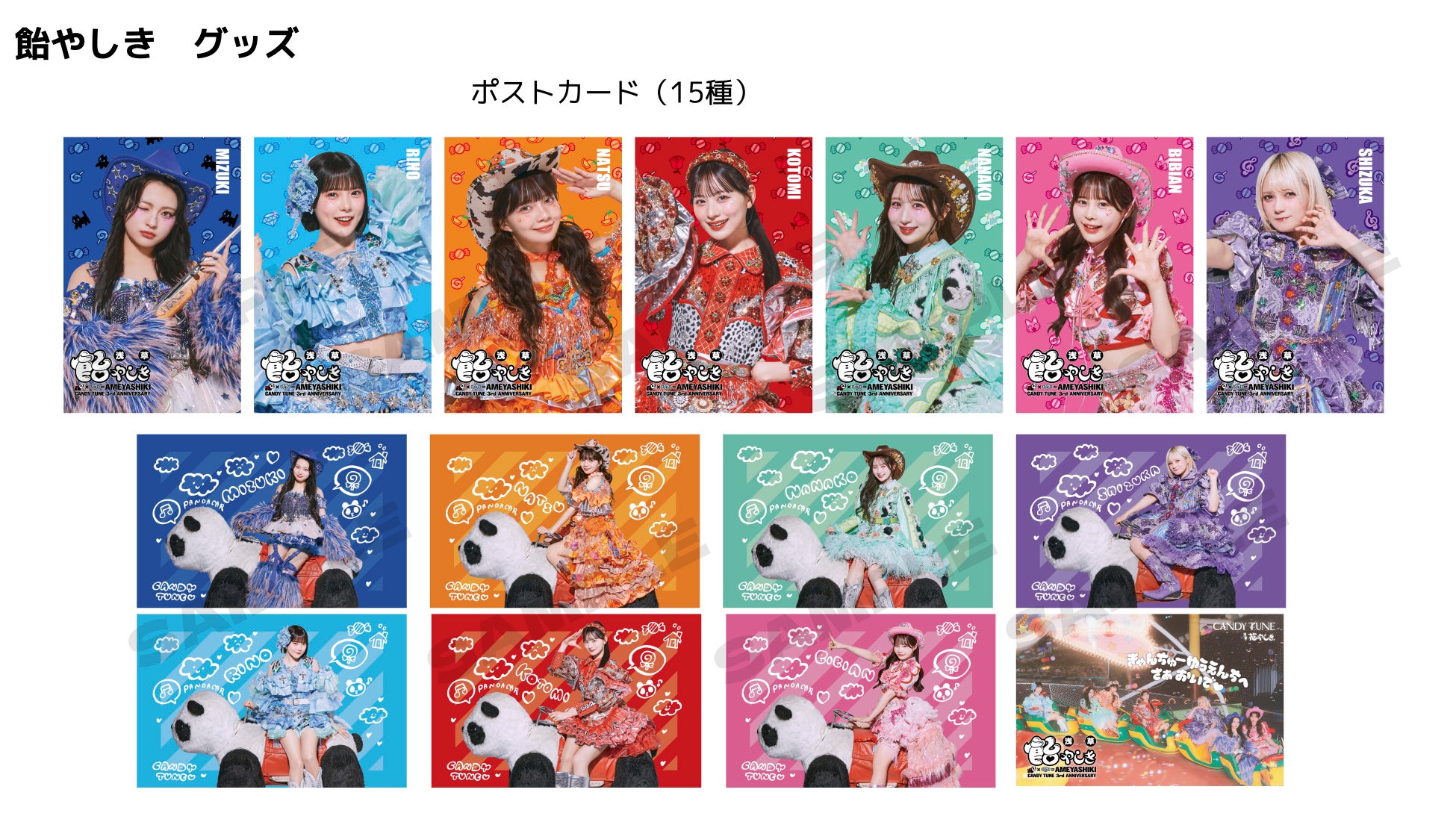 ●飴やしき・ポストカード(全15種)撮り下ろし7種/パンダカー7種/キービジュアル1種