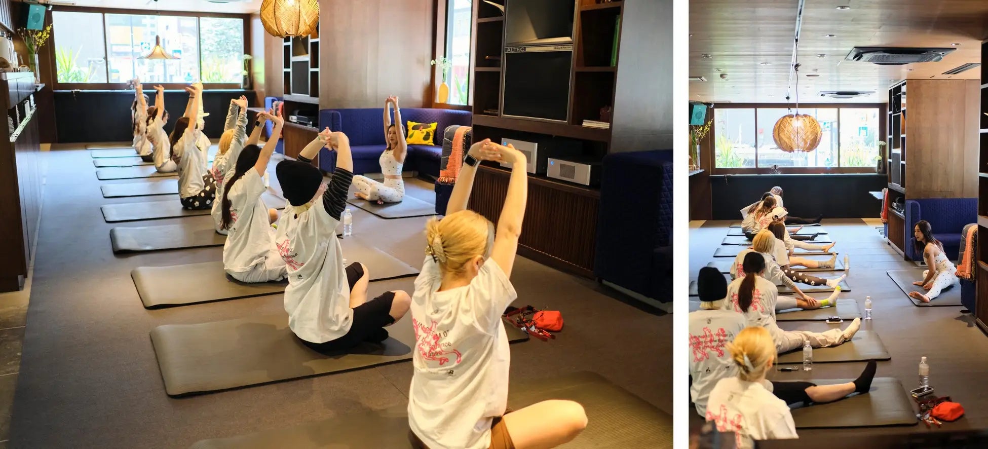 After PartyでDJを務めた、ちゃんちー(湯田ちひろ)による、ランニング後のリカバリーを叶えるアフターストレッチをマラソン翌日の朝に実施しました。