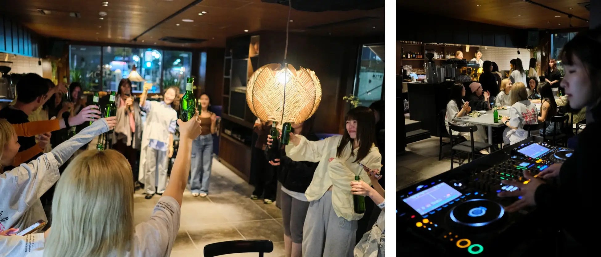 「MAISON YWE」を会場に、名古屋を中心に活動するDJ Kaoruと、フィットネストレーナーとしても活動する、ちゃんちー(湯田ちひろ)をゲストDJに迎え、After Partyを開催。完走したランナーたちが、お互いを祝福しあったり、交流を深めたりする時間となりました。