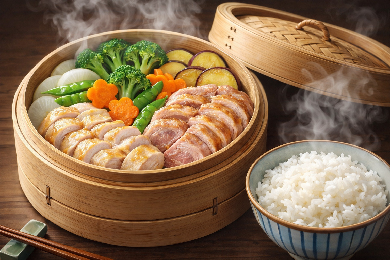 <蒸篭(せいろ)蒸しや、こだわり野菜、高たんぱくで栄養豊かな朝食でエナジーチャージ!>