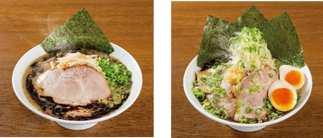 代表メニューの「焦がしにんにく黒とんこつラーメン」は真っ黒な「秘伝の黒マー油」を使用し、とんこつスープ、麺とチャーシューのすべての味をまとめ上げています。