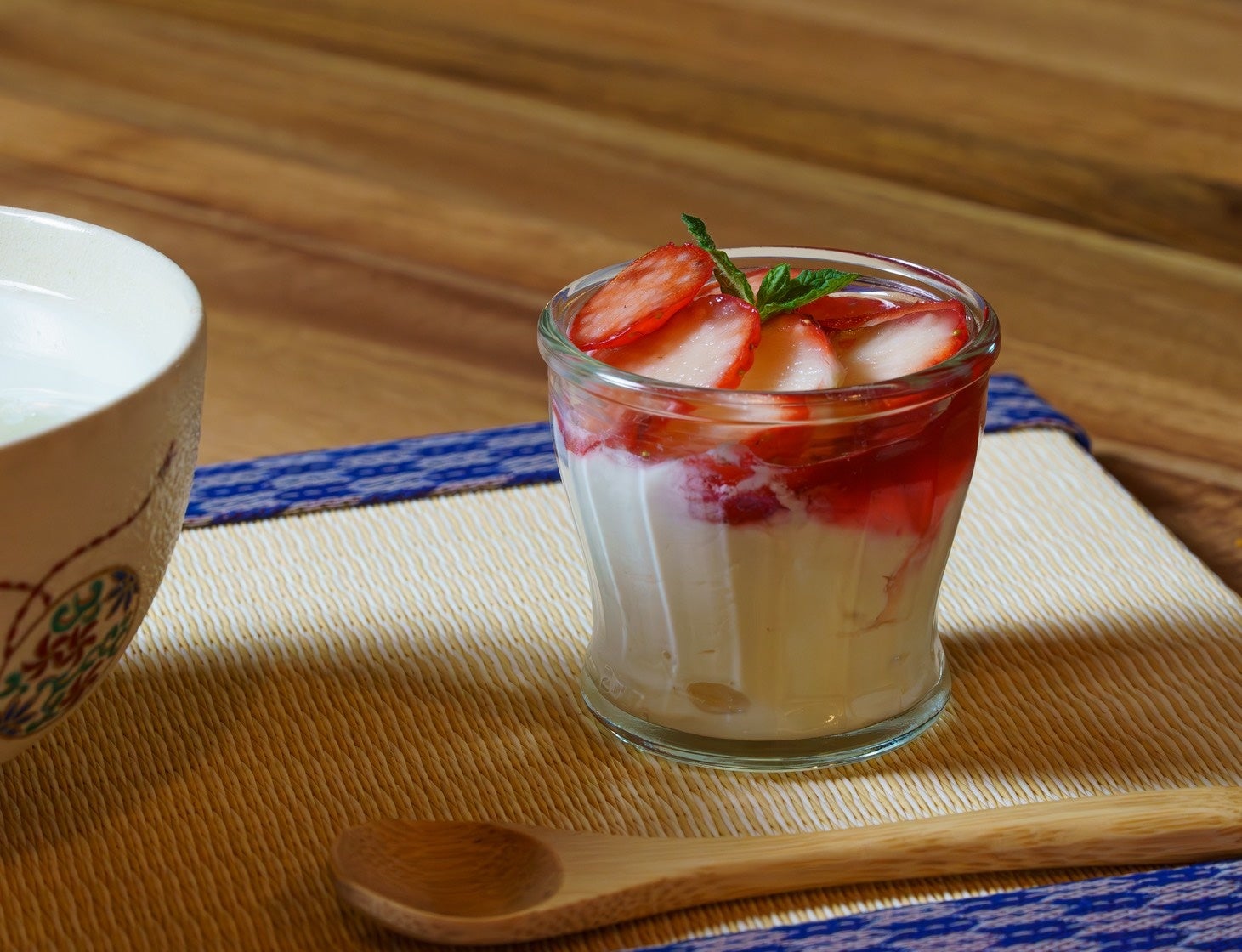 豆腐スイーツは、いちご/黒糖きなこ/はちみつ/抹茶の4種