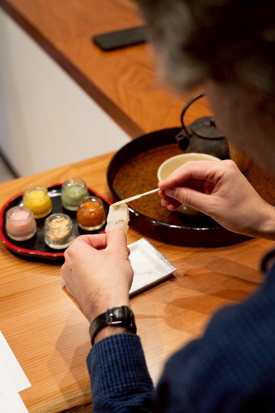 オリジナル麹(にんにく/パプリカ/梅)ときな粉を外郎(ういろう)にと一緒にお好みの組み合わせで楽しめる