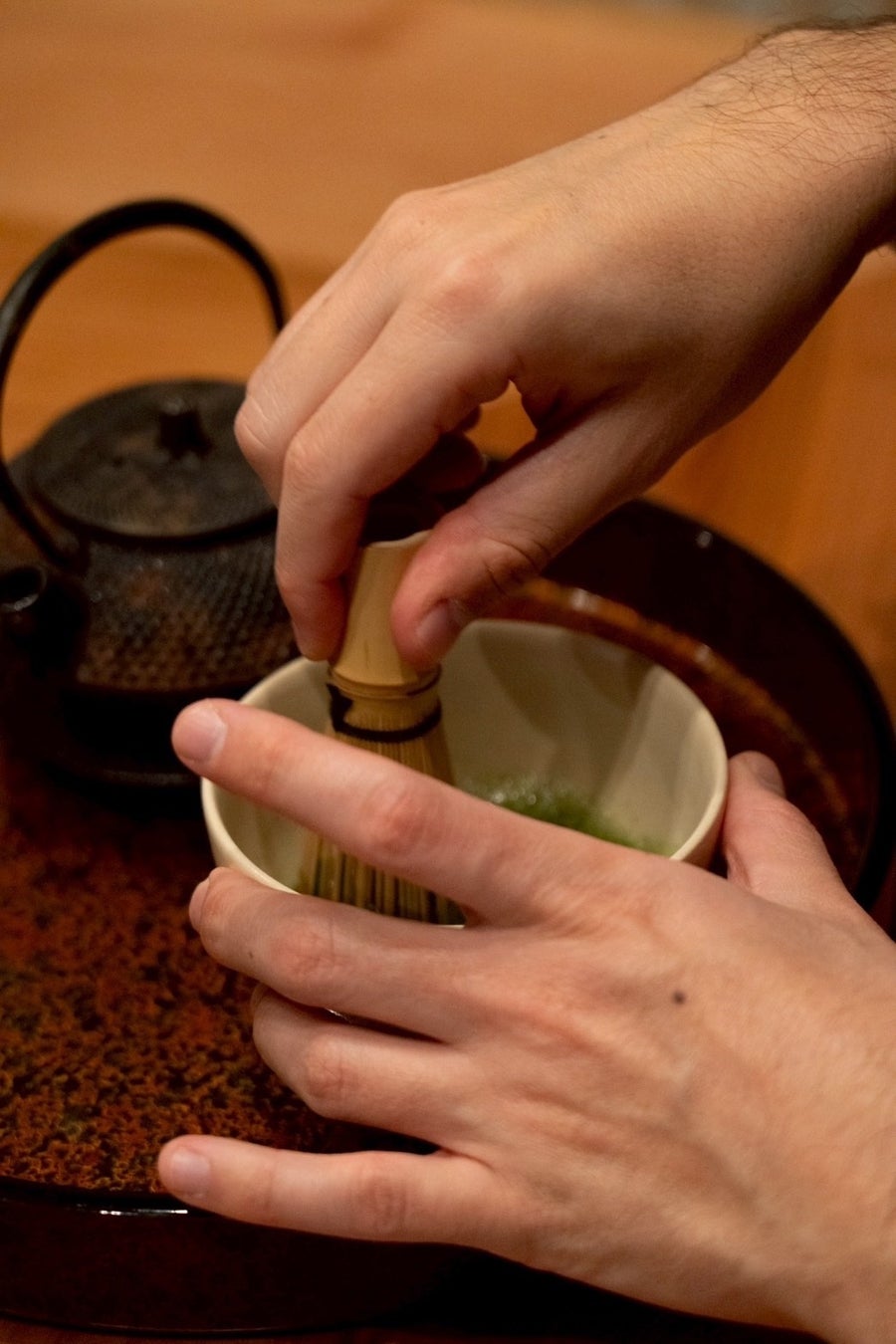 お客様自身でお湯を入れ、抹茶を点てる体験ができる