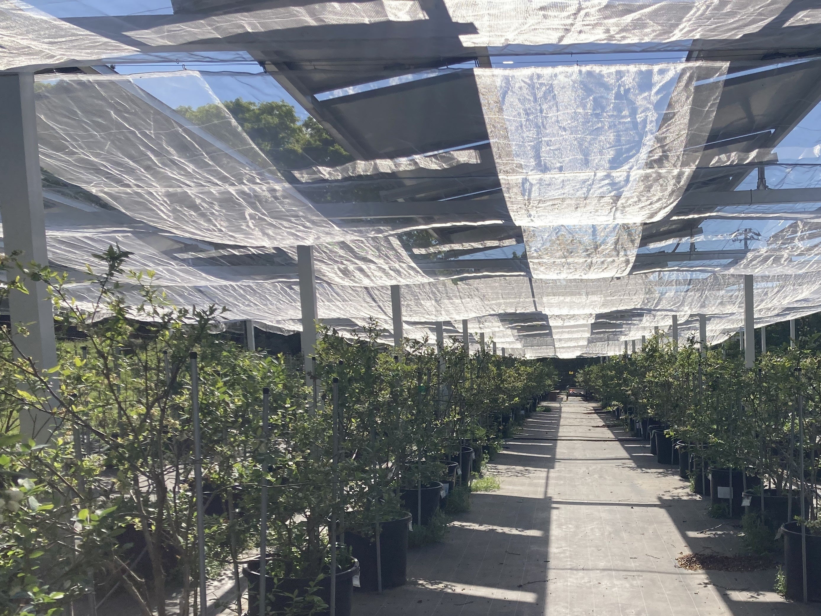 当農園のソーラーシェアリング設計では、農地上部約3メートルに設置された太陽光パネルによって、近年の猛暑の中でも快適にブルーベリー狩りをお楽しみいただけます。