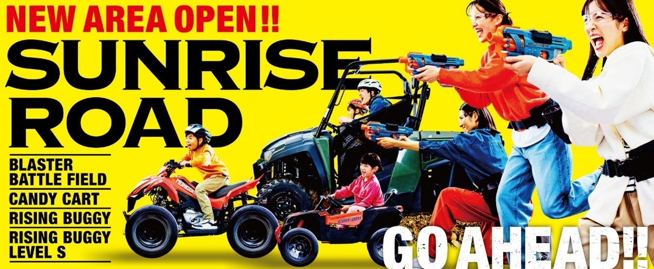 2月14日の「ブラスター・バトルフィールド」を皮切りに、3月17日には「ライジング・バギー」「キャンディー・カート」が開業。このたび、4月17日には「ライジング・バギー Level S」と「ネスタ・バギーツアー」が登場し、いよいよ「サンライズ・ロード」がグランドオープンします。