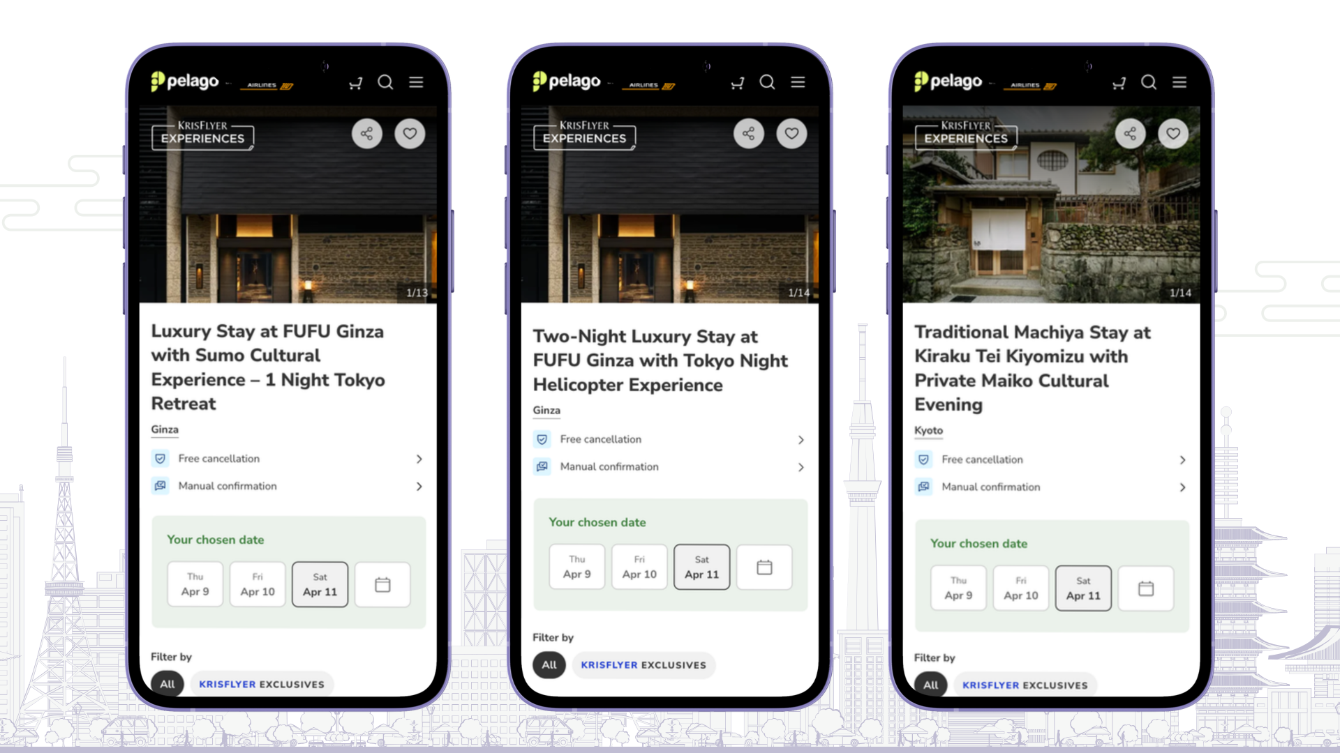 第一弾として、東京・京都の2エリアで3つの体験パッケージを展開します。宿泊・食・文化体験を組み合わせたパッケージで、KrisFlyer会員がマイルで予約できる形で提供します。(2026年6月体験分まで予約が可能)
