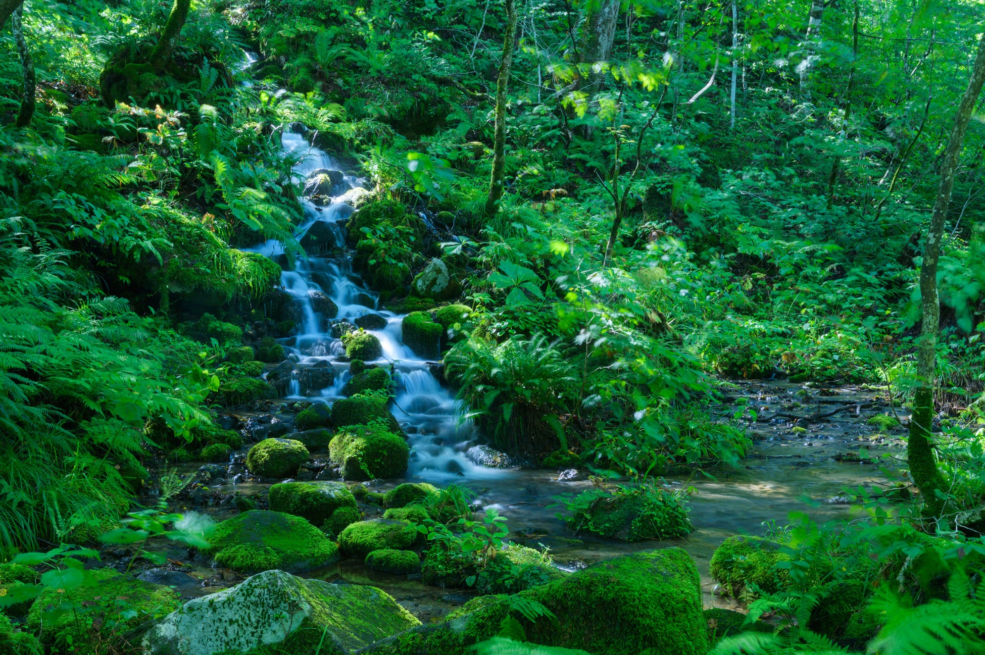 ・下馬門沢:水温が常に約10度。ブナ林からの湧水が流れ、ひんやりと冷たい空気を感じるスポット。