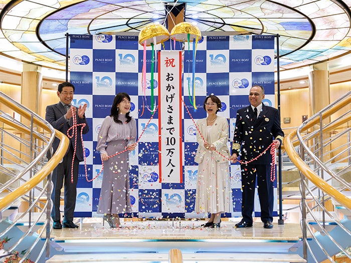 これまでご乗船いただいたすべてのお客様に、心より感謝申し上げます。私がはじめてピースボートクルーズに乗船した1993年には、まさか10万人の方が乗船される日が来るとは夢にも思いませんでした。移りゆく時代や国際情勢の中、多くの方々にこの旅を選んでいただき、またその魅力を伝えてくださったおかげだと深く感謝しております。これからは、乗客の皆さまの安全と快適性を何よりも重視するとともに、海洋保護や持続可能な航海の実現に向けた取り組みを一層強化してまいります。ジャパングレイス・ピースボート・本船一同、皆さま一人ひとりの夢が花開く船旅をお届けしてまいります。