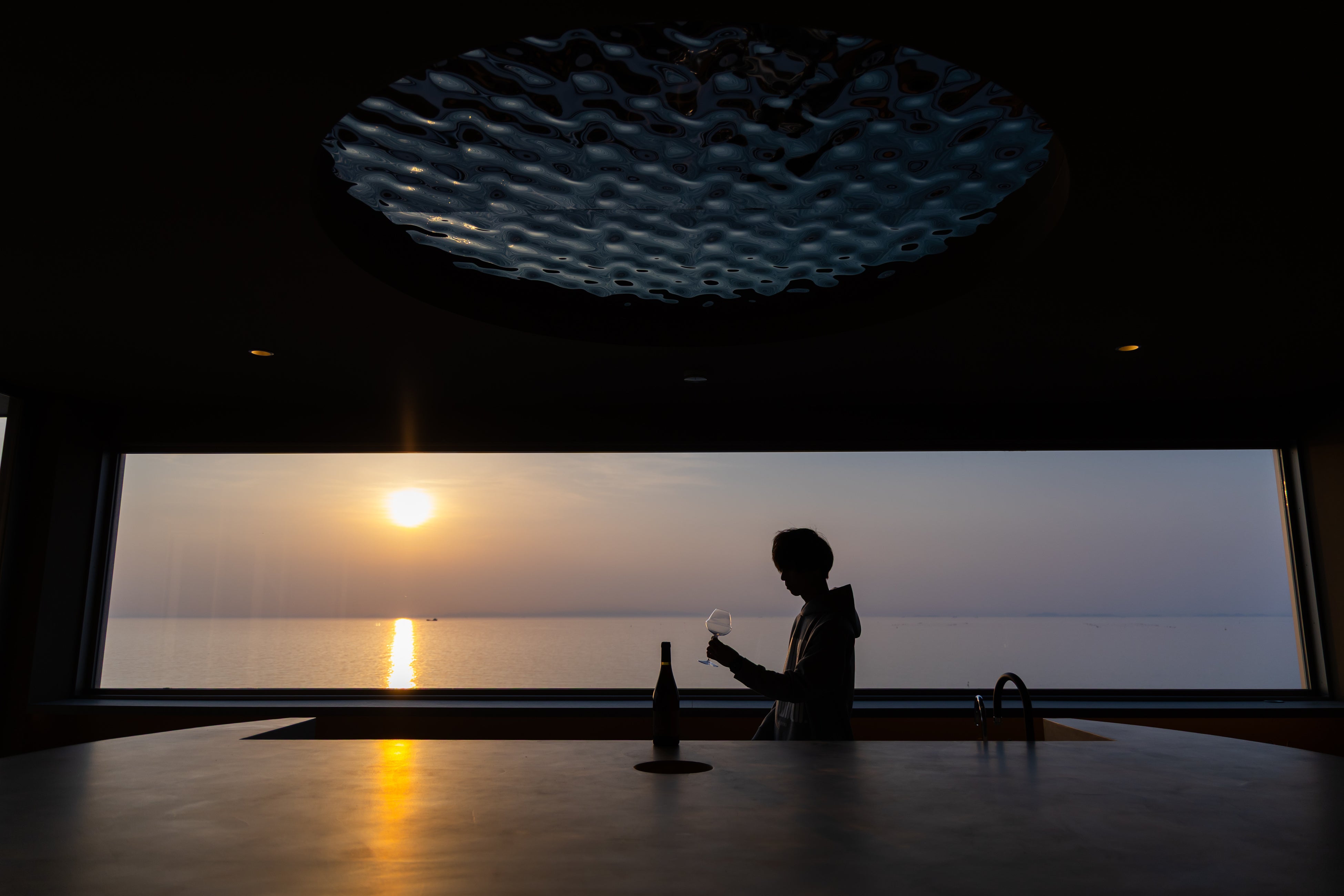 海に面した大開口の窓からは、時間とともに移ろう景色をそのまま楽しむことができます。