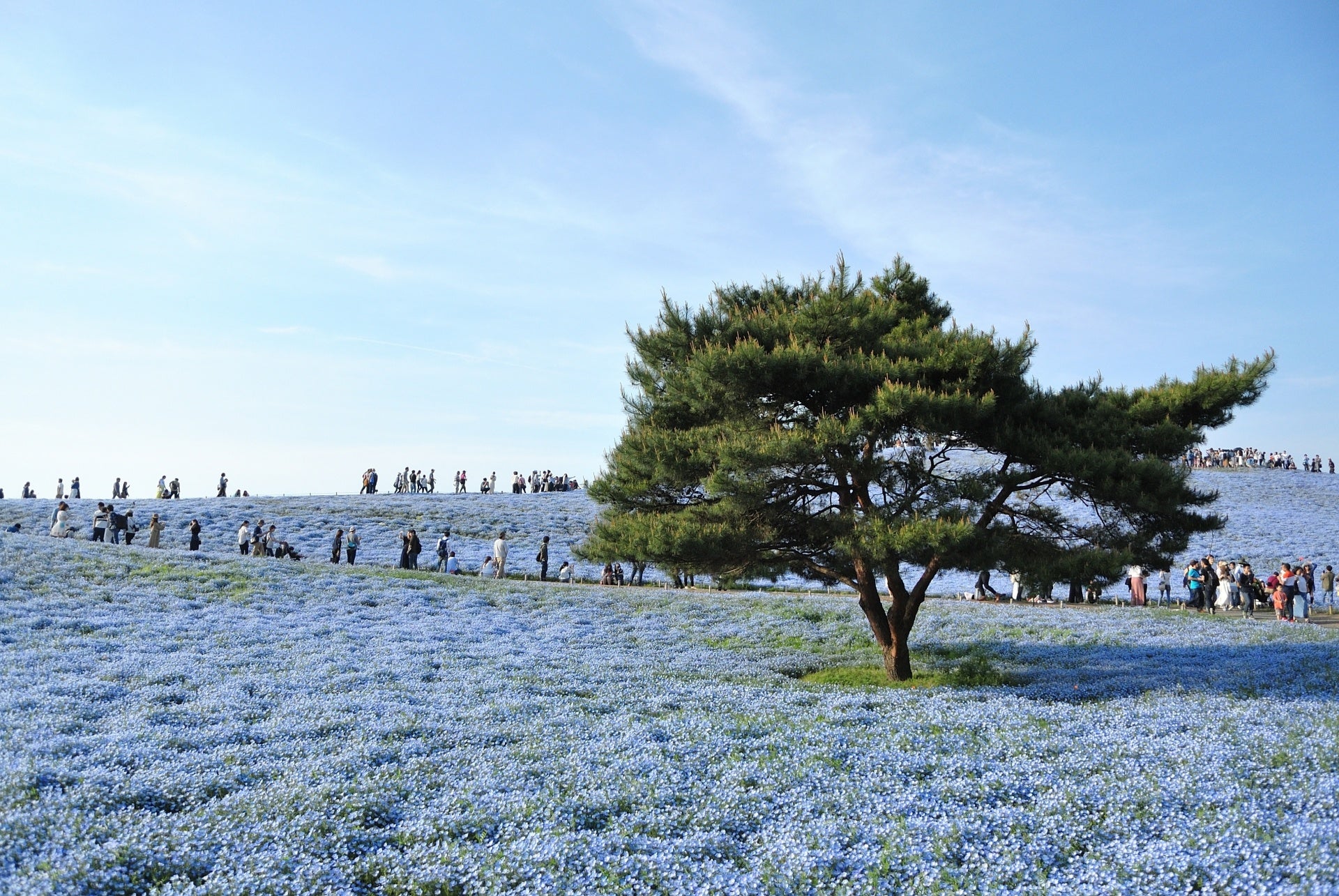 様々なメディアに取り上げられ、国内外から注目されている絶景スポット、ひたち海浜公園で「みはらしの丘」という、水色のネモフィラで埋め尽くされた絶景の丘を散策した後、海岸沿いに北上(車で40分、約25km)し、バイキングの夕食もおススメのコースです。