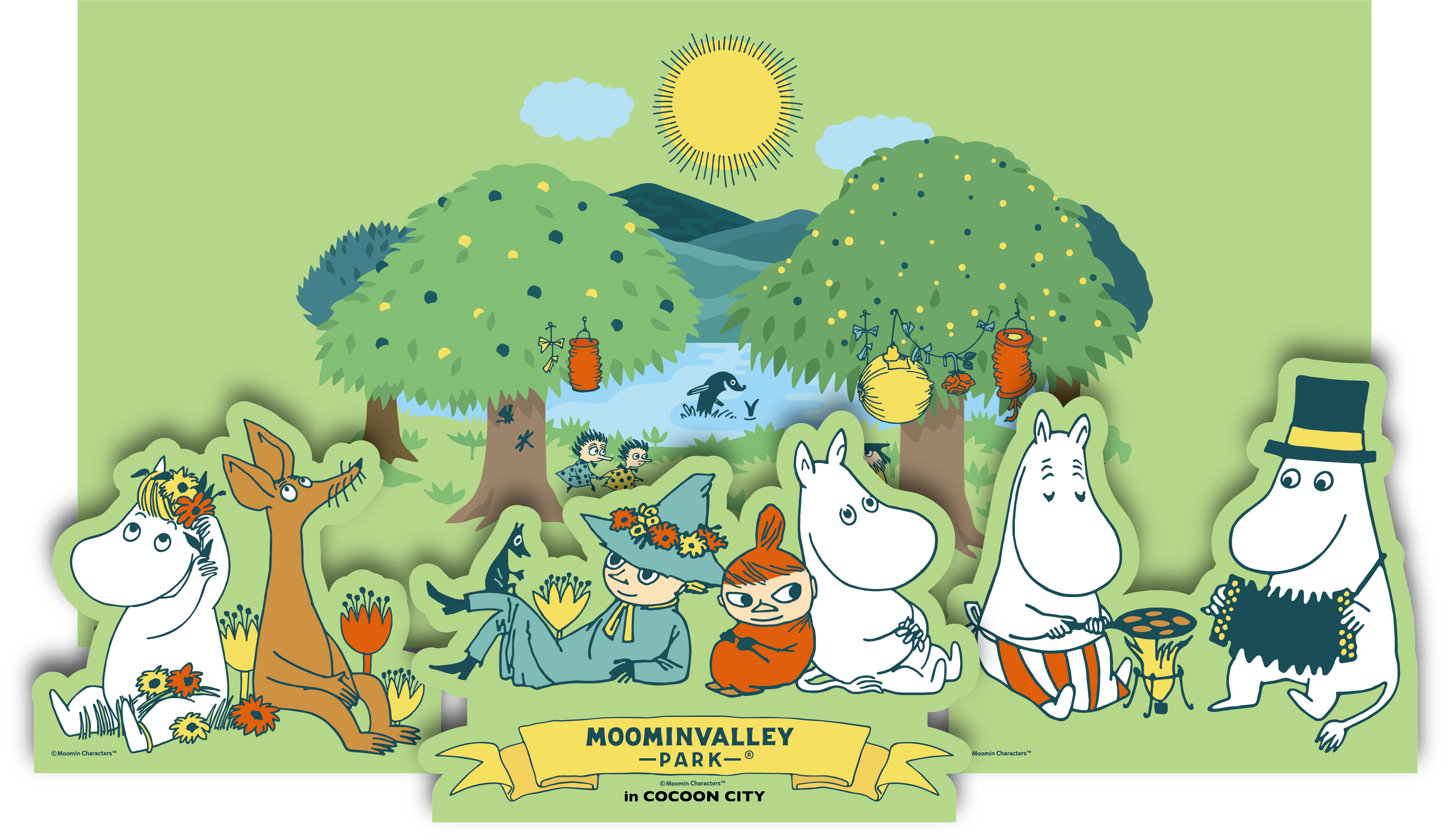 ムーミンバレーパークで体験できる風景や出会えるキャラクター、展示などをコクーンシティで展開。小説やコミックスで広く愛される「ムーミン」の物語の世界観を再現した空間は、子どもから大人までお楽しみいただけます。