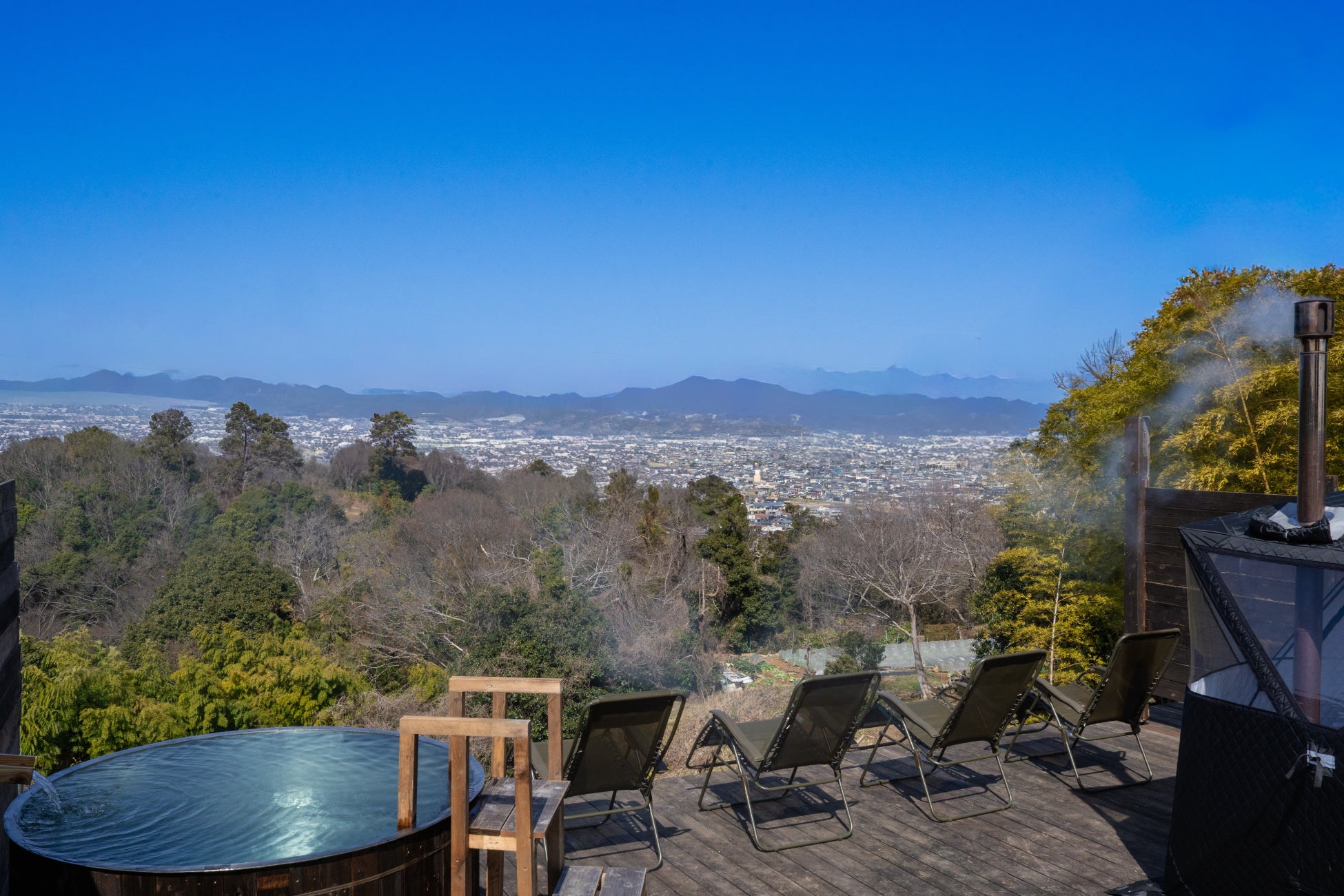 サバンナ箱根は、都心から約60分の箱根・小田原の高台に誕生した、完全予約制のプライベートテントサウナ施設です。空が近く、風が抜け、夜には小田原の街明かりが広がる展望デッキで、薪の炎と自然の音に包まれる時間を提供します。