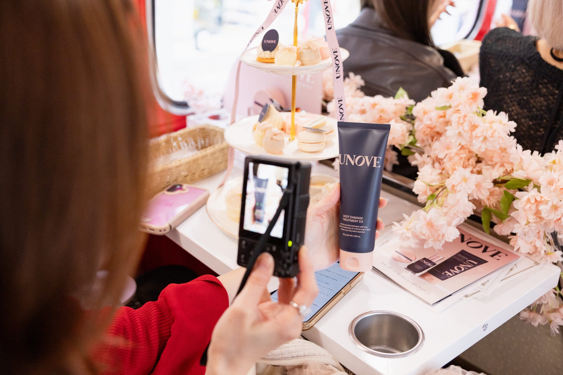 本イベントは、桜色に装飾された特別仕様のアフタヌーンティーバスに乗車し、UNOVEが提案する“至福のひととき”を五感で体験いただける移動型POP-UPとして実施いたしました。完全招待制の特別イベントとして、約300人のインフルエンサーや一般消費者の方にご参加いただき、ブランドの世界観を体感いただく機会となりました。