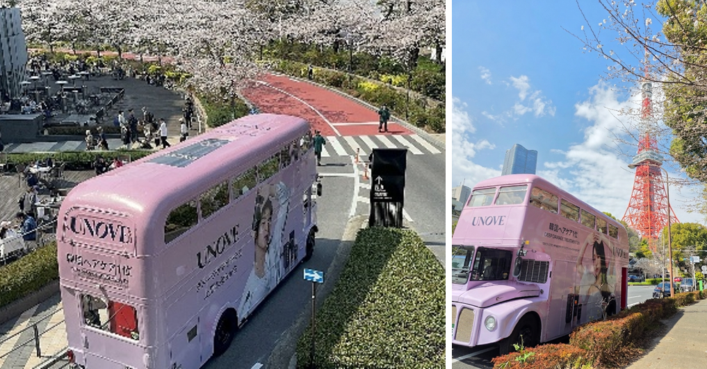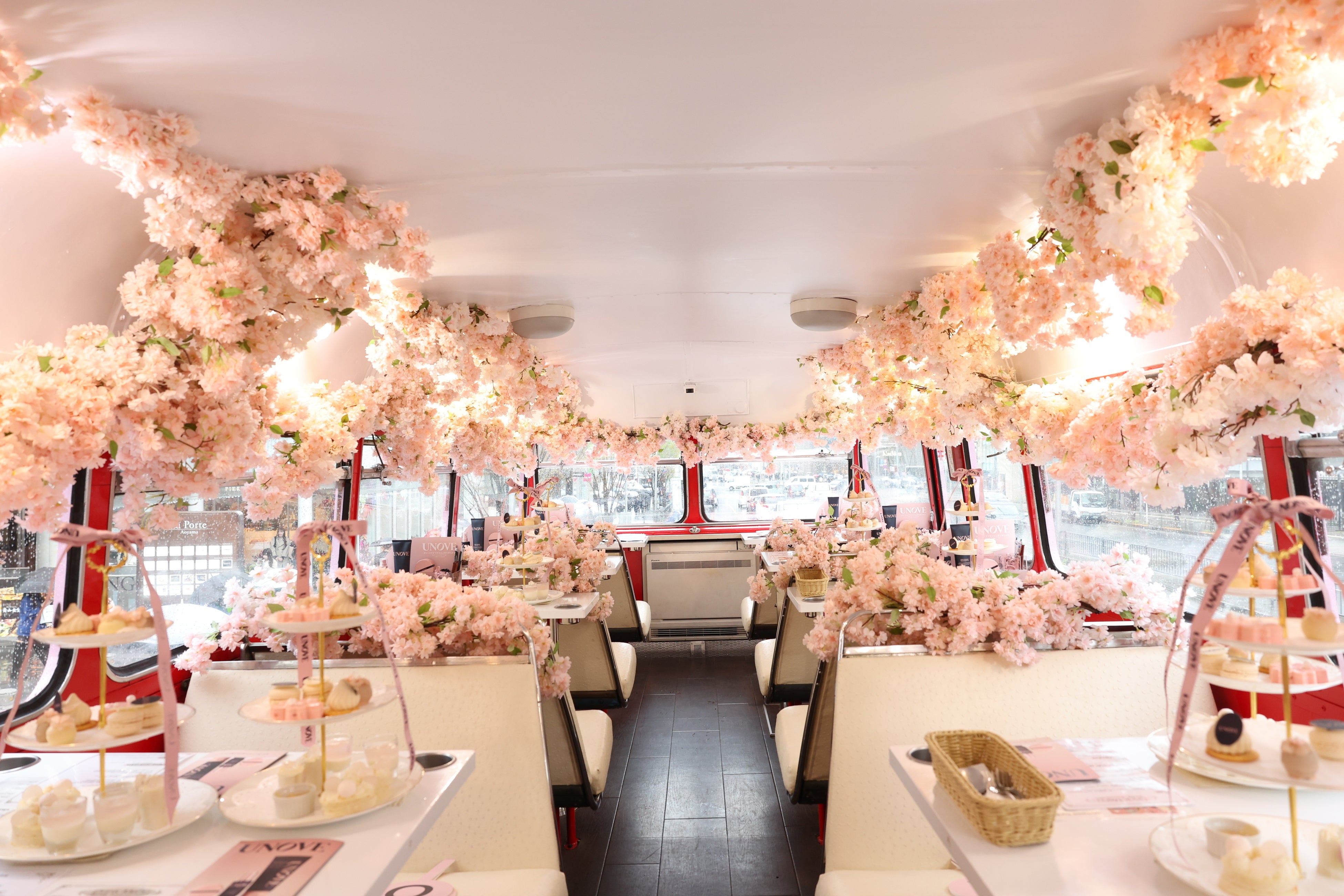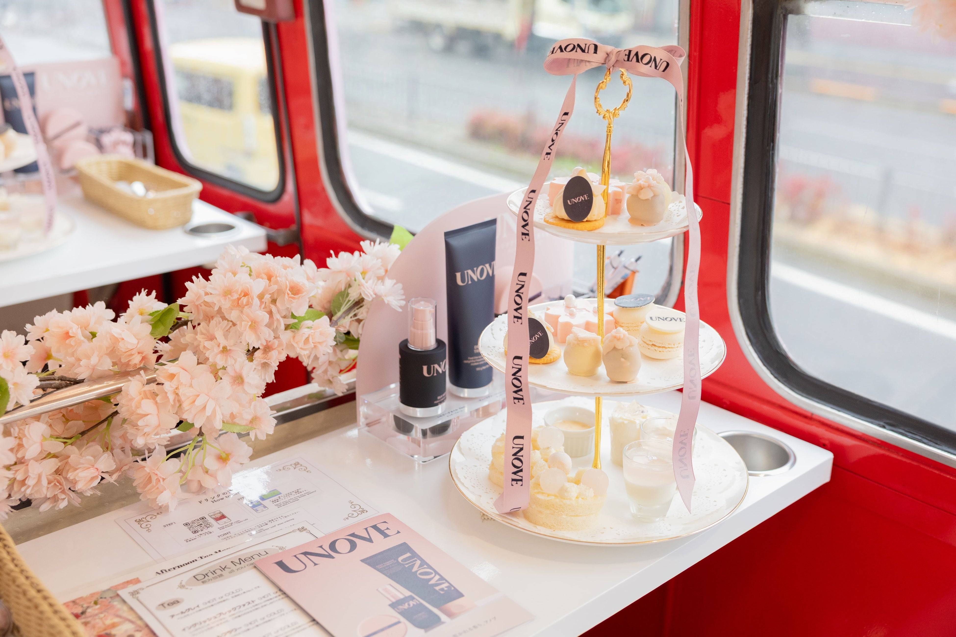 本イベントでは、桜色に装飾された特別仕様のアフタヌーンティーバスを舞台に、UNOVEのブランド世界観を体験いただける空間を創出しました。