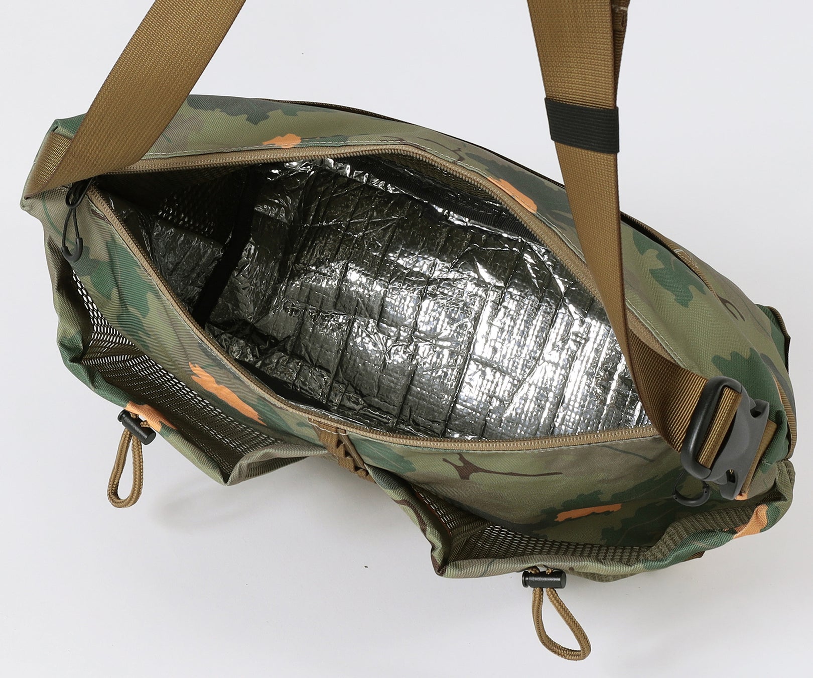 手提げと肩掛けの2WAYで使える保冷バッグを付属。