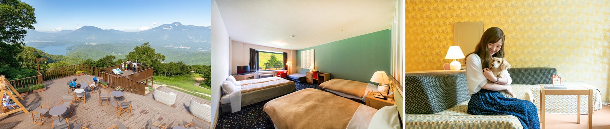 長野県北部の斑尾山にある高原リゾート「タングラム」。泊まる・遊ぶ・滑る、が一つになった滞在型リゾートです。ホテル客室は全室 40 ㎡以上でゆったりとお過ごしいただけます。洋室の他、和室、和洋室、80 ㎡の特別室、ペットと泊まれるペット対応ルームや自転車と泊まれる自転車ルームなど、様々なルームタイプでお客様のニーズにお応えいたします。温泉大浴場には露天風呂やサウナを完備しており、1 日の疲れをゆっくり癒していただけます。