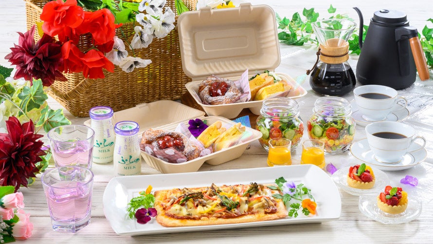 ●花々や草木の香りと朝日に包まれながら、北海道食材を使用した「モーニングバスケット」を堪能。