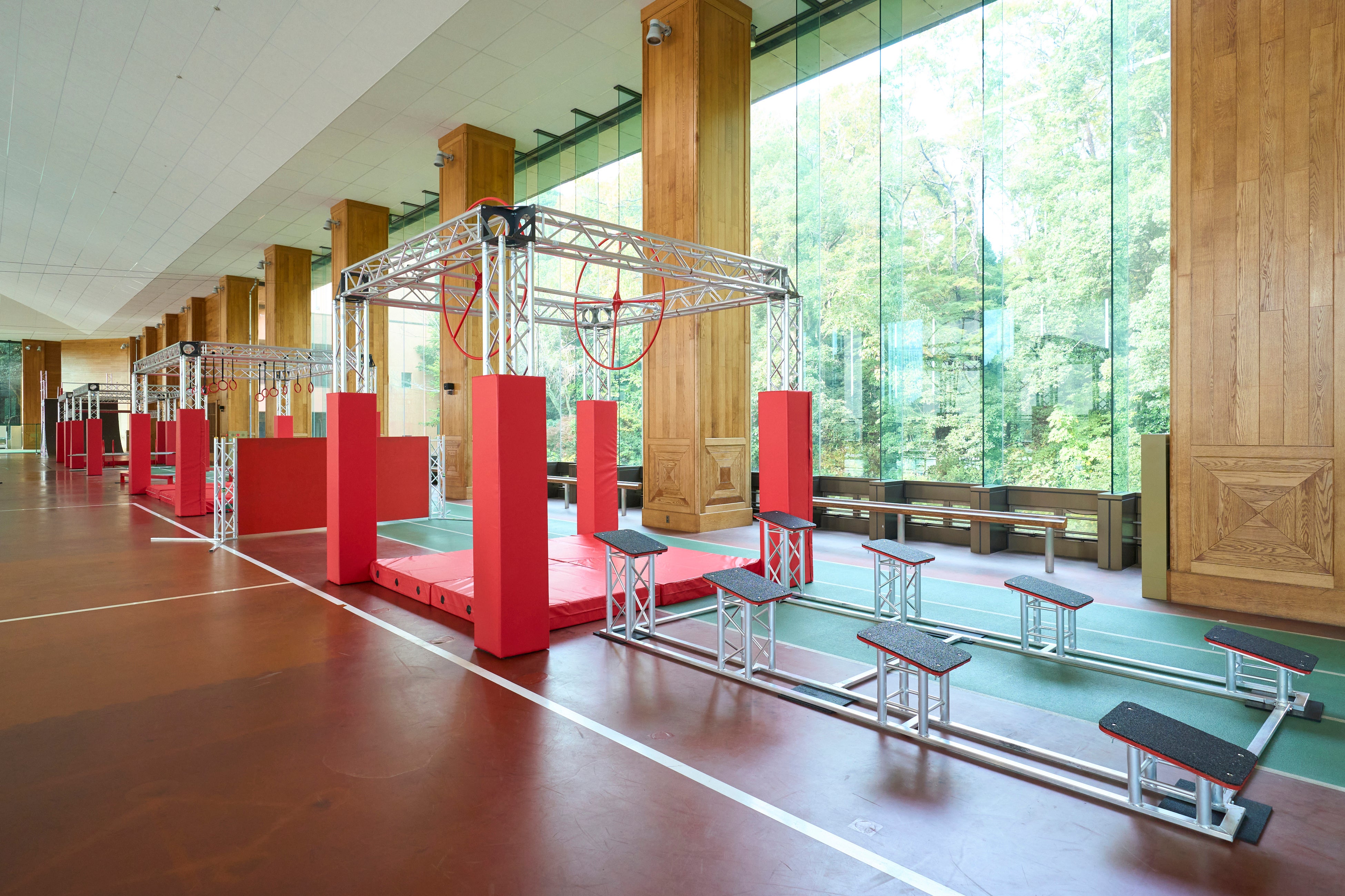 2025年1月には、近代五種の新競技に採用され注目を集める「オブスタクル」近代五種コースを国内で初めて新設。70mのコースに、「モンキーバー(うんてい)」や、高さ3.5メートルの反り返った壁「フィニッシュウォール」な8種の障害物全てを備えたコースは、11月に開催された全日本選手権でも実際に使用した現物の「オブスタクル」となっており、ご宿泊のお客様や企業研修などでもご利用です。