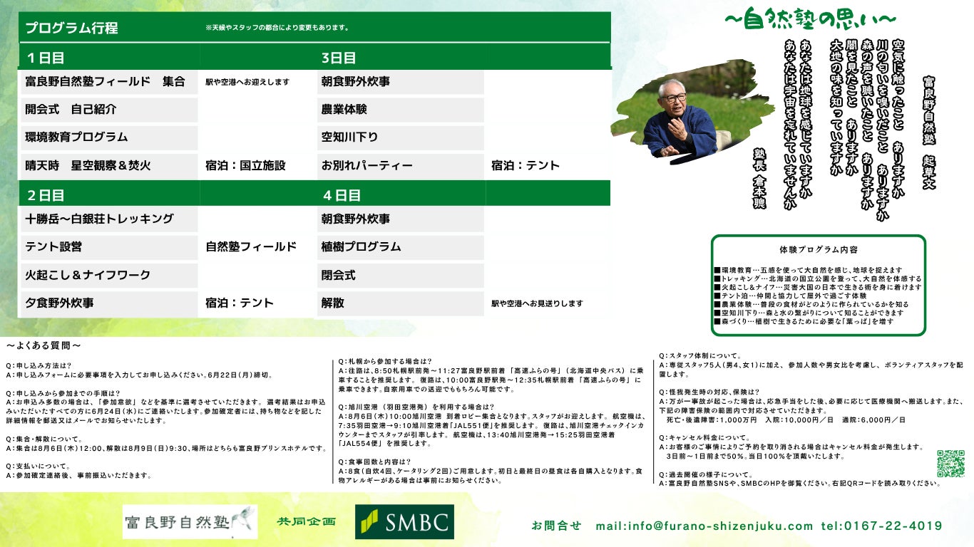 ぜひこの機会に、SMBC×富良野自然塾 共同企画のグリーンキャンプにご応募ご参加ください。