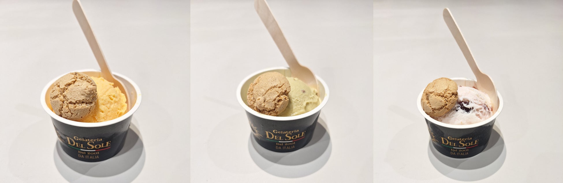 ◇万博イタリアパビリオン人気ジェラートカップ盛り3種、イタリア伝統菓子アマレッティ付き 1個600円