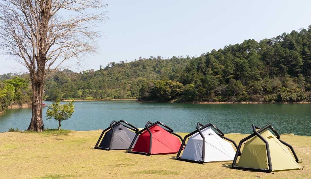 ポールなどの面倒な組み立てなし!ボタンを押すだけ手放し設営を可能にする、丈夫なエアフレームを採用。