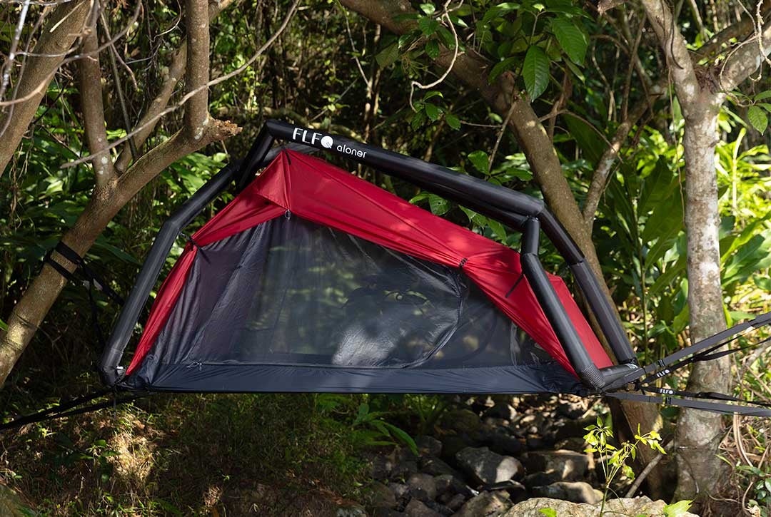 風、雨、泥、虫など様々な環境に対応、地上テントとしては勿論、特許取得のハンモック技術で空中泊も!ひっくり返らない、身体が沈まない、居心地抜群なソロテント【aloner】Makuakeにて公開!