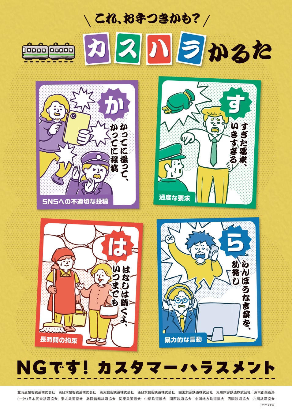 〇2025年度に続き、鉄道業界全体で一体となってカスハラに対する取組みを推進してまいります。