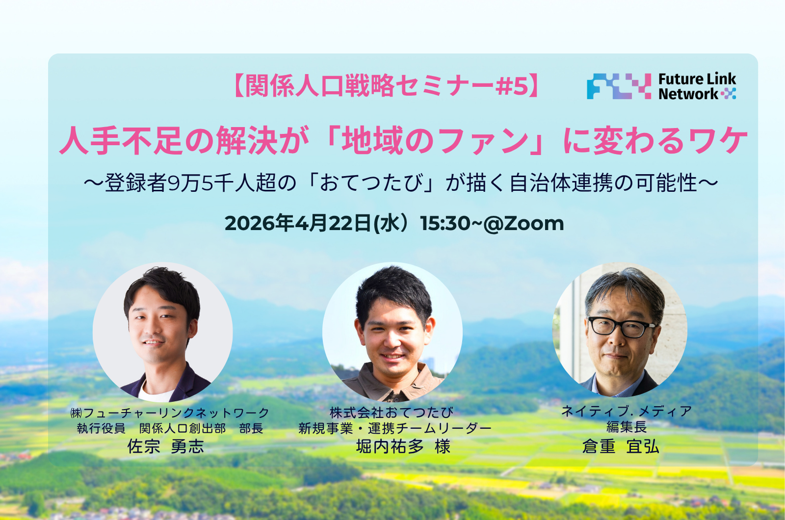 ゲスト:佐宗 勇志(株式会社フューチャーリンクネットワーク 執行役員 関係人口創出部 部長)