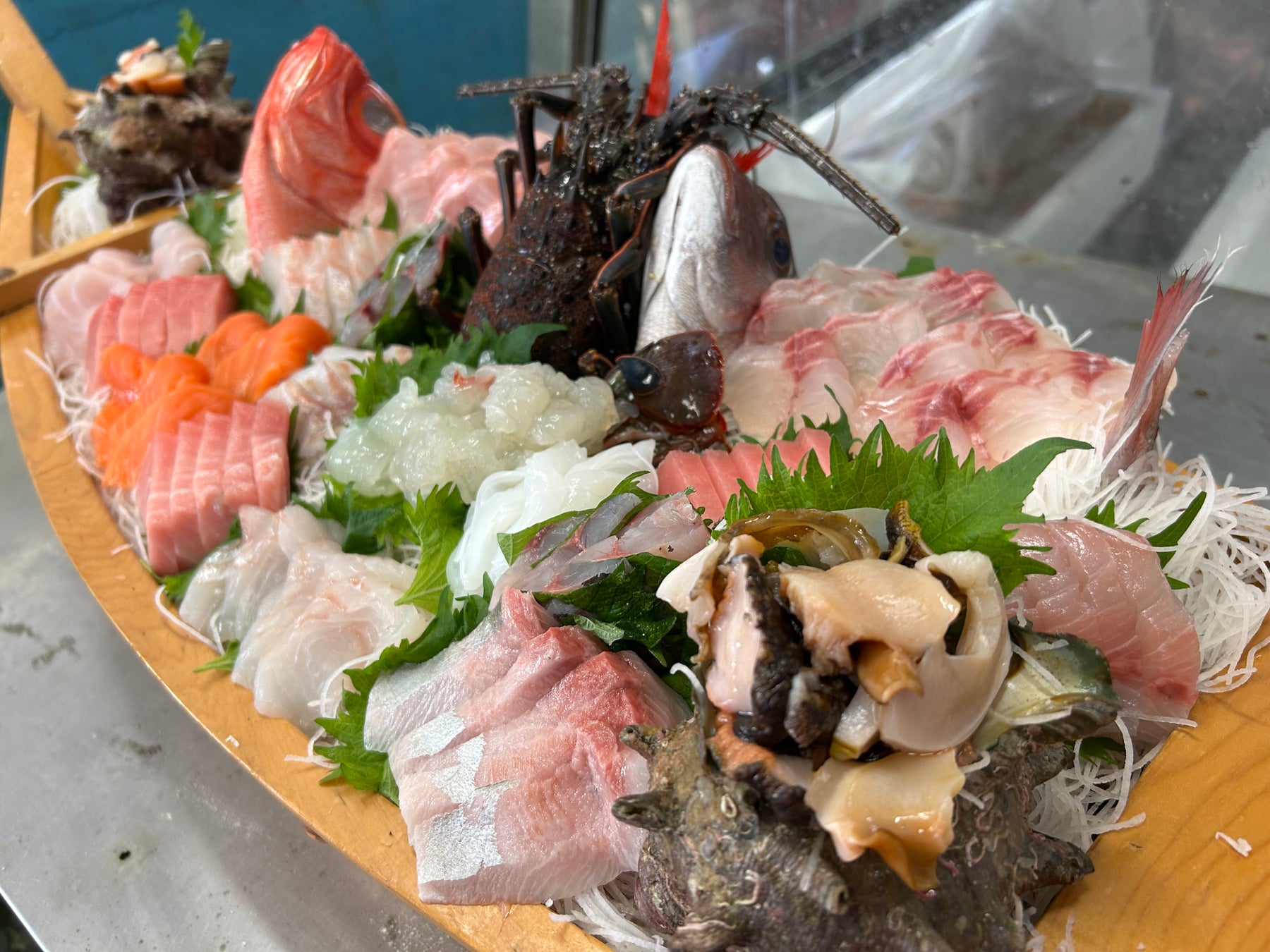(日によりますが伊勢海老、サザエ、アワビ、タイ、キンメ、ヒラメ、マグロ等)