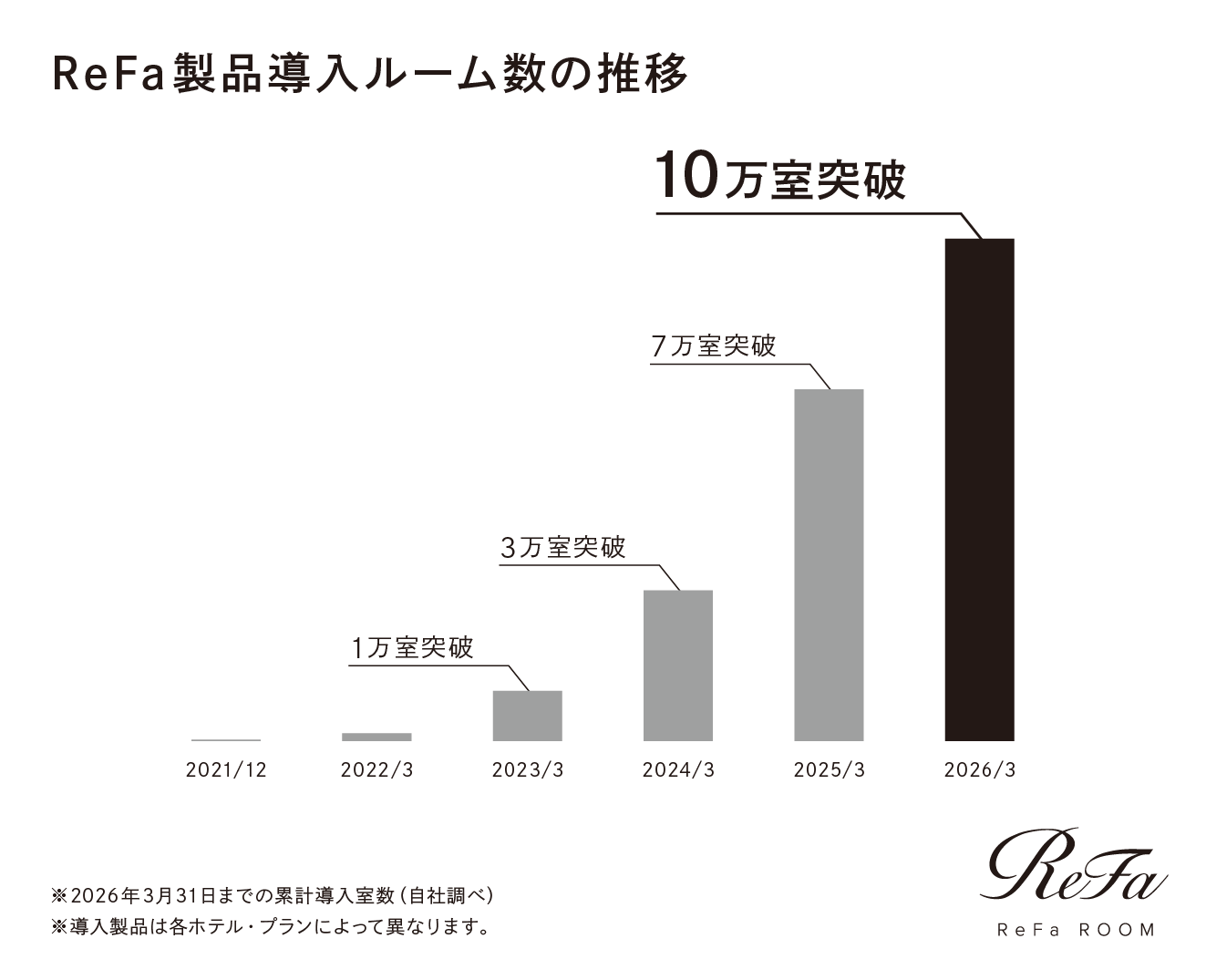 ※ 集計期間:2021年12月〜2026年3月 ※ ReFa製品を導入したホテル客室数(自社調べ)