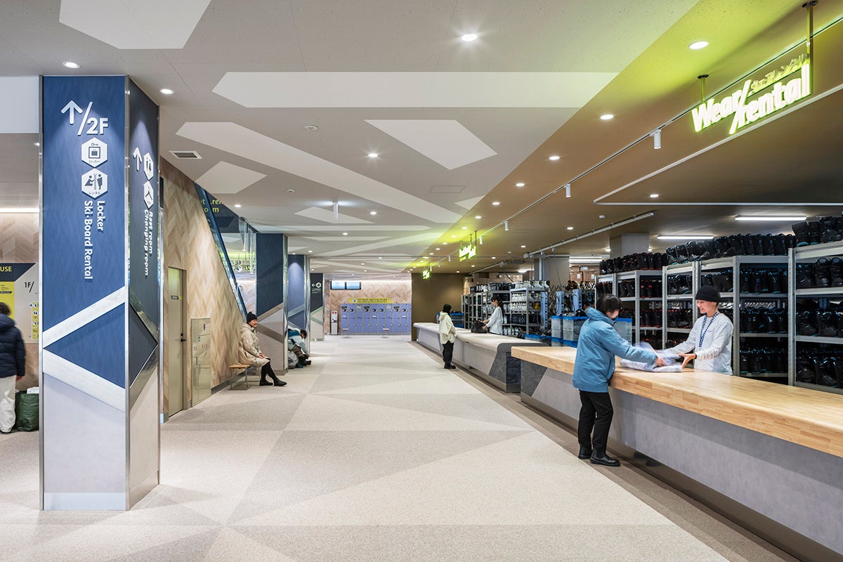 近年のスキー場利用者の増加に合わせた受け入れ態勢の強化や利用環境の向上を目的に「総額9億8000万円」をかけ「レンタルハウスの大規模リニューアル」を実施。日本最大級のスキー・スノーボード用品5000セットの完備に加えて、コインロッカー「2500台」、「綺麗で快適な更衣室、トイレ」を完備。施設内の導線見直しと合わせて、快適な移動を実現する「エスカレーター2基」を新設して、最新かつ利便性の高いレンタルの環境を整えました。